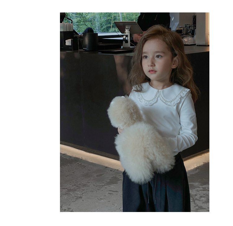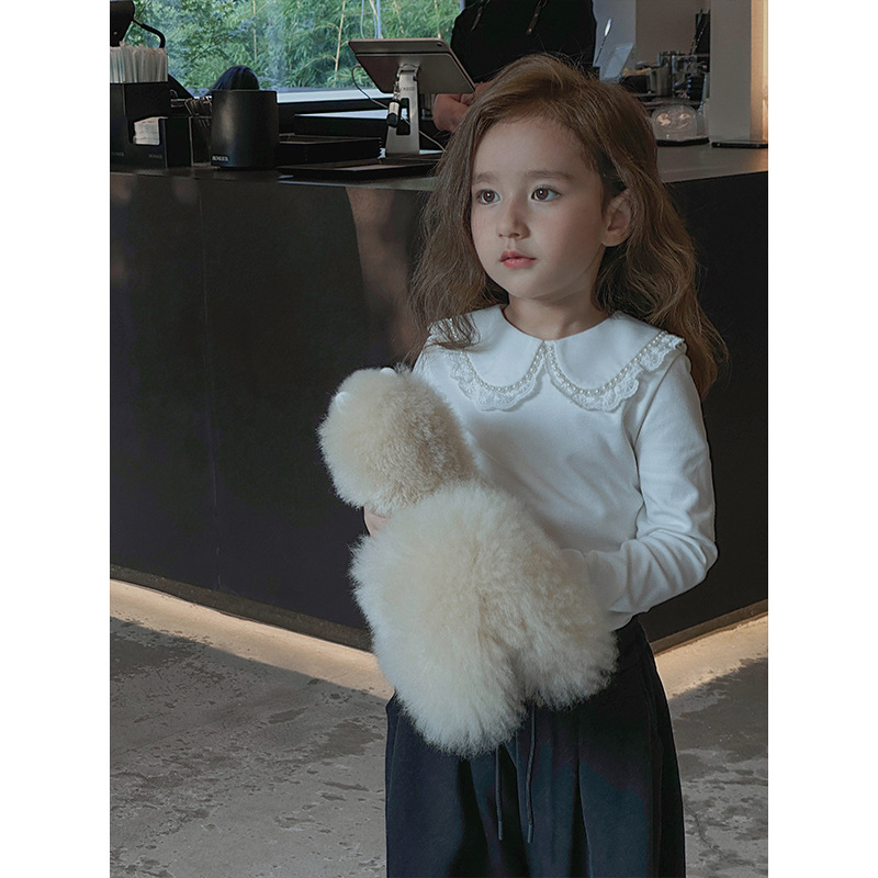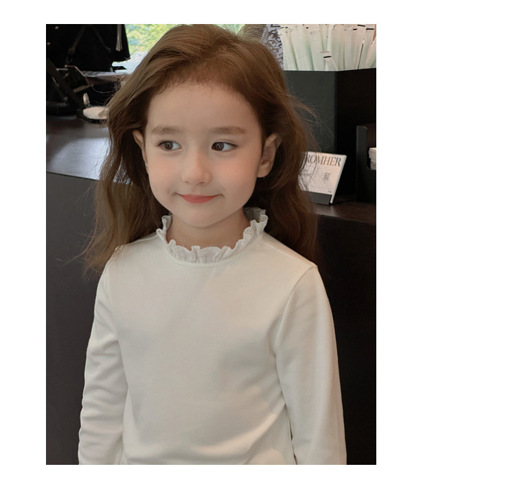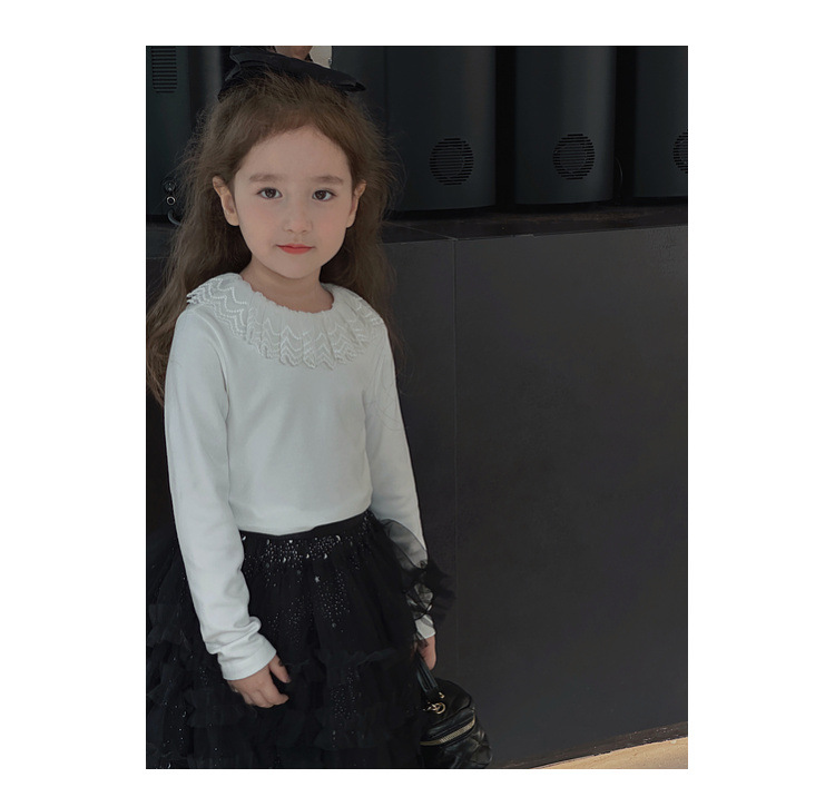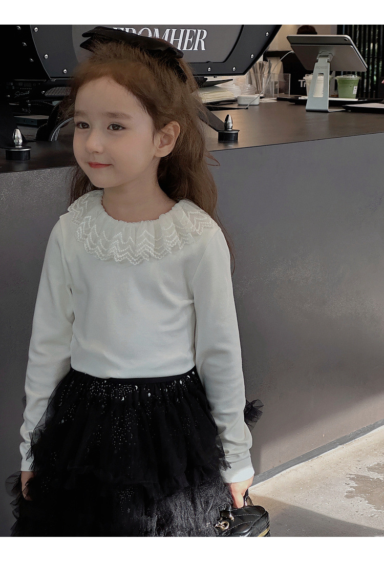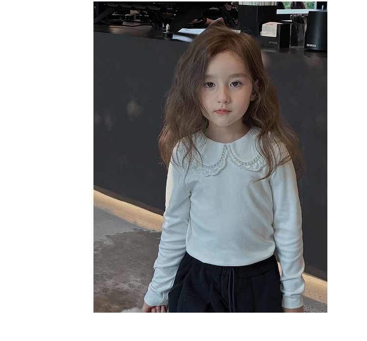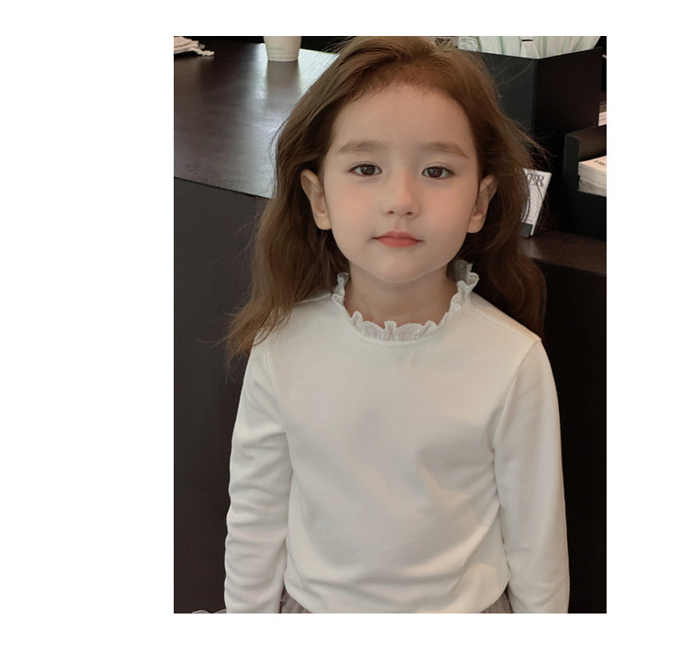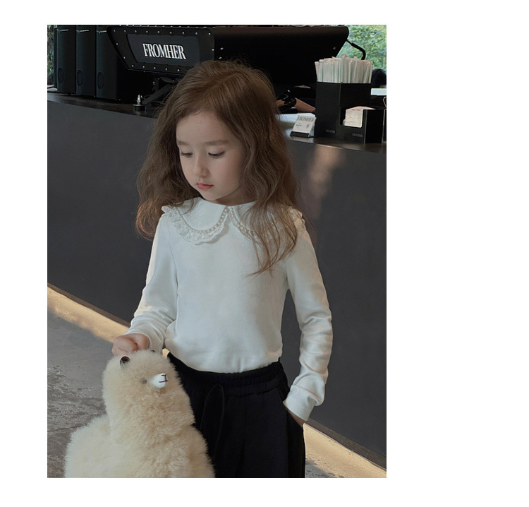 소녀의 로터스 칼라 베이스 셔츠 가을 화이트 슬림핏 긴팔 티셔츠 소녀의 세련된 모든 매치 라펠 베이스 셔츠