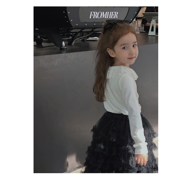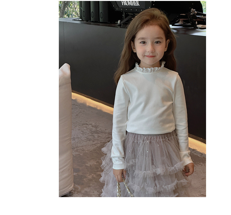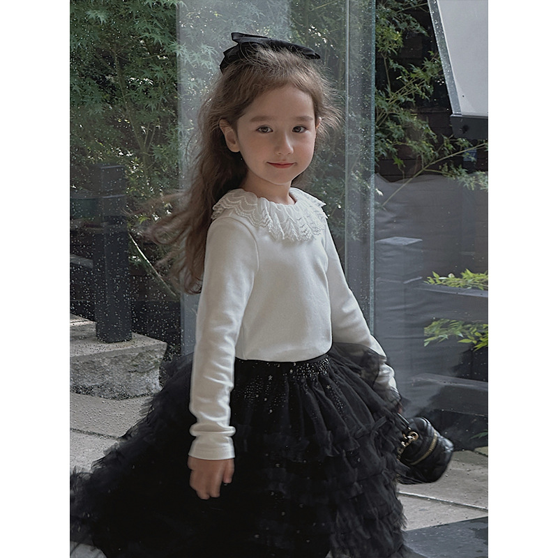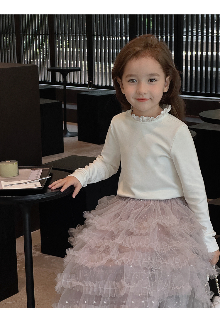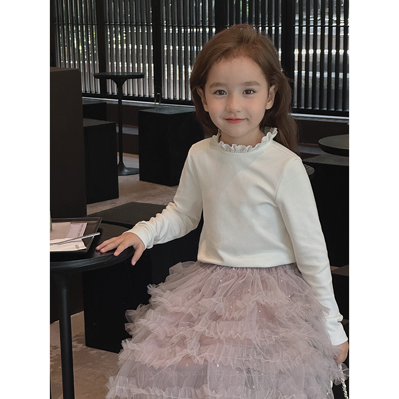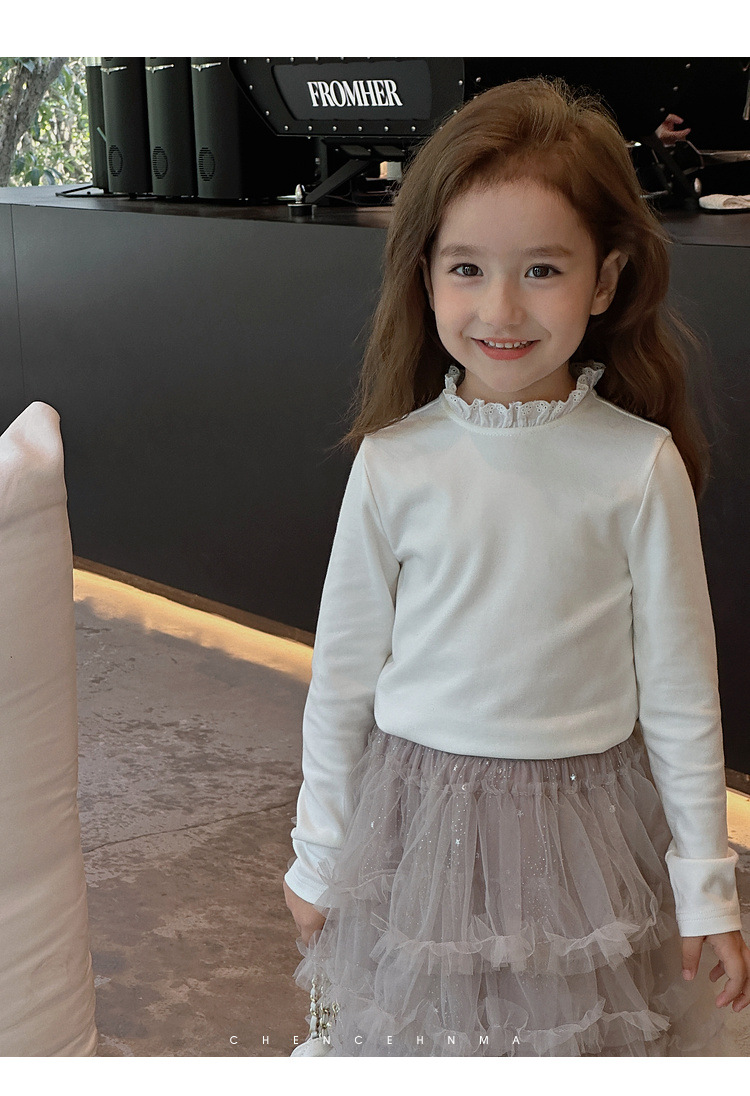 소녀의 로터스 칼라 베이스 셔츠 가을 화이트 슬림핏 긴팔 티셔츠 소녀의 세련된 모든 매치 라펠 베이스 셔츠