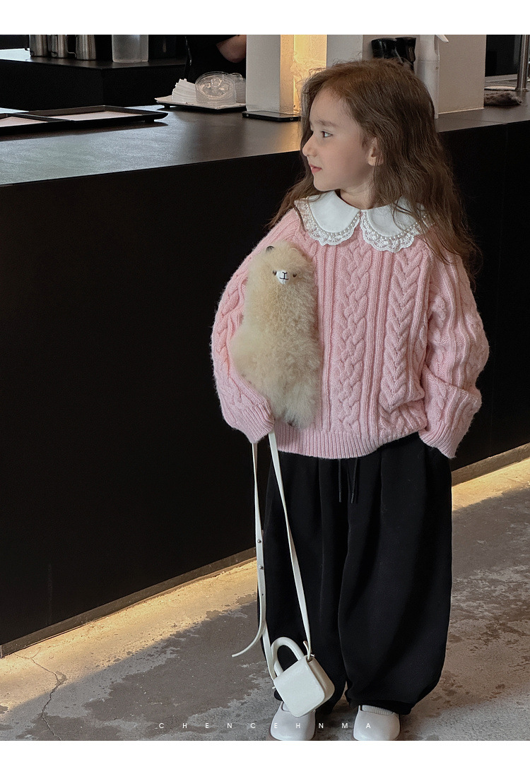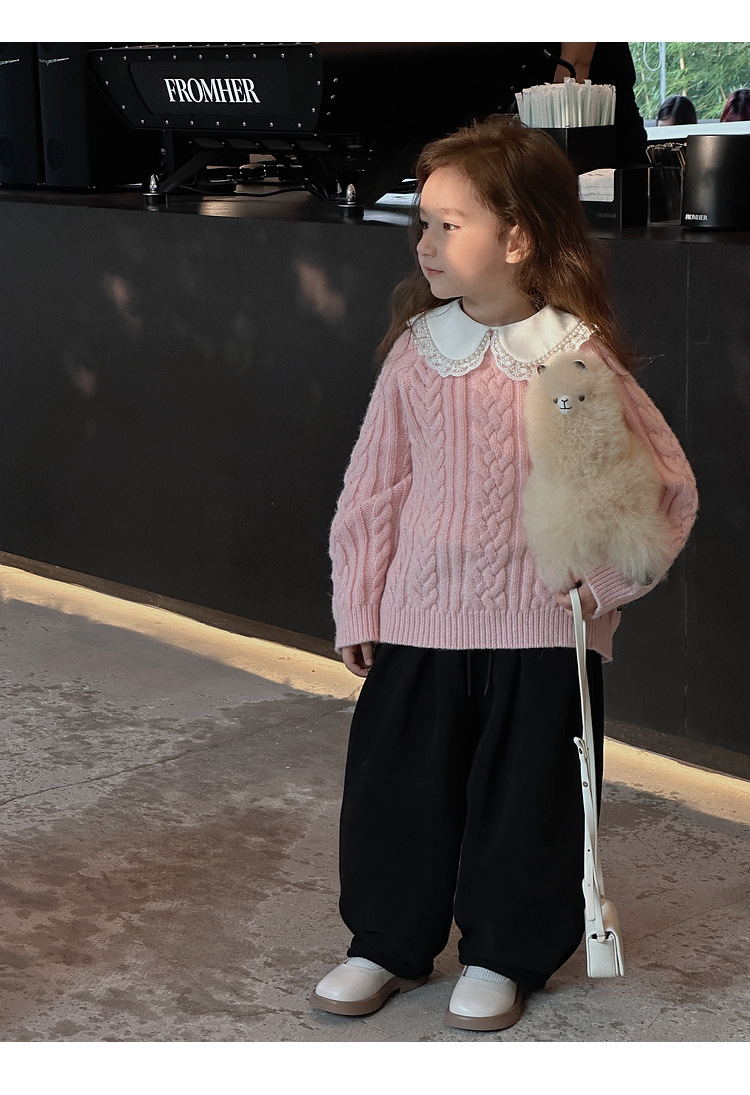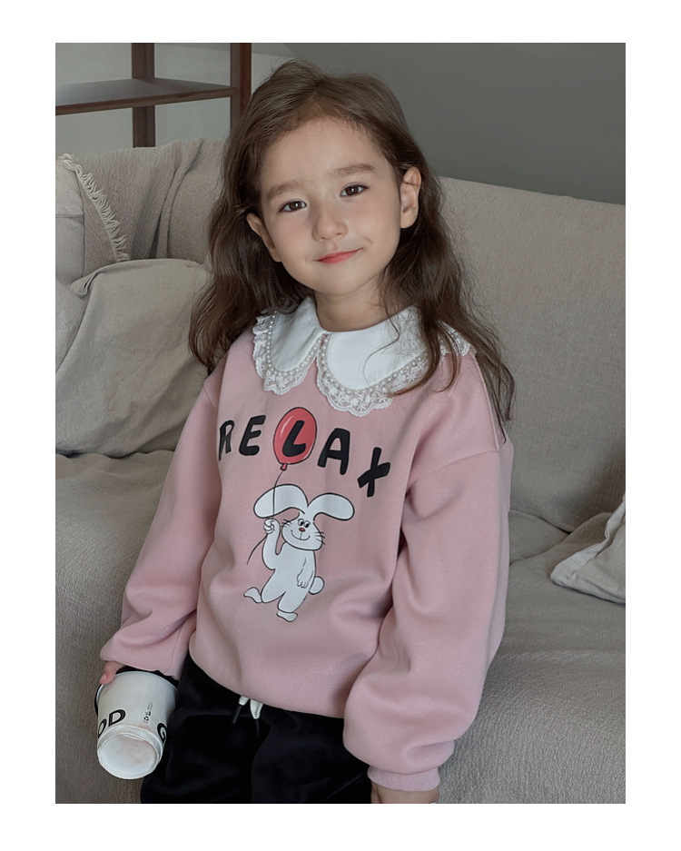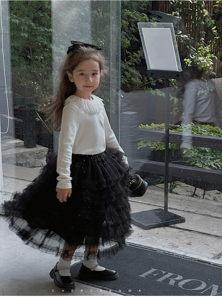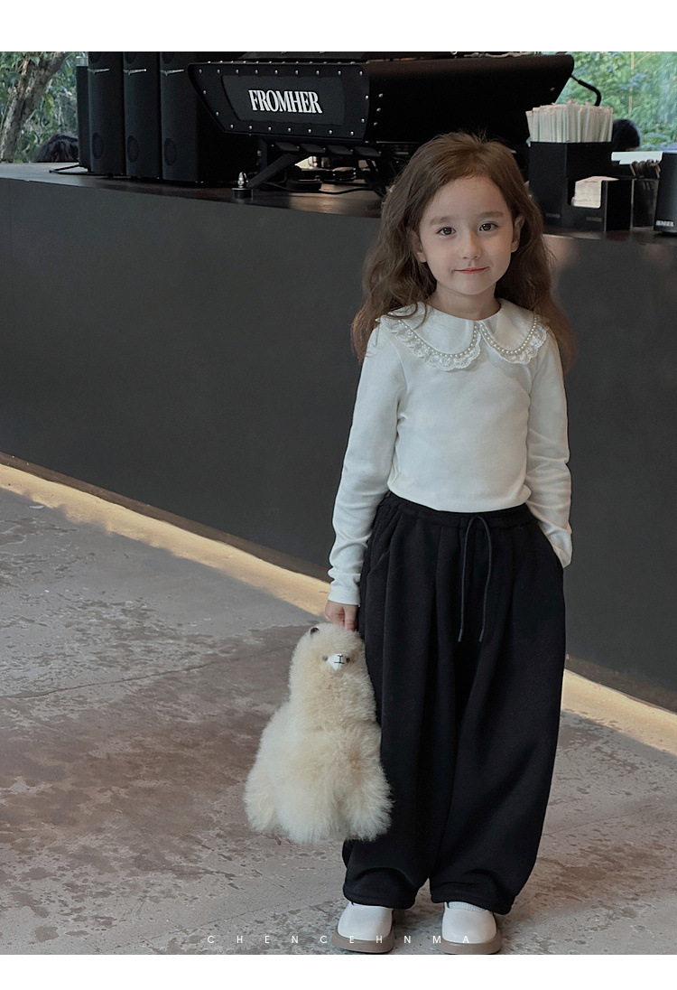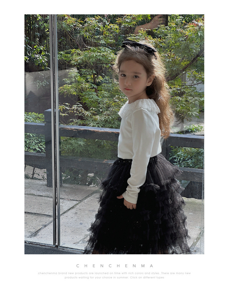 소녀의 로터스 칼라 베이스 셔츠 가을 화이트 슬림핏 긴팔 티셔츠 소녀의 세련된 모든 매치 라펠 베이스 셔츠