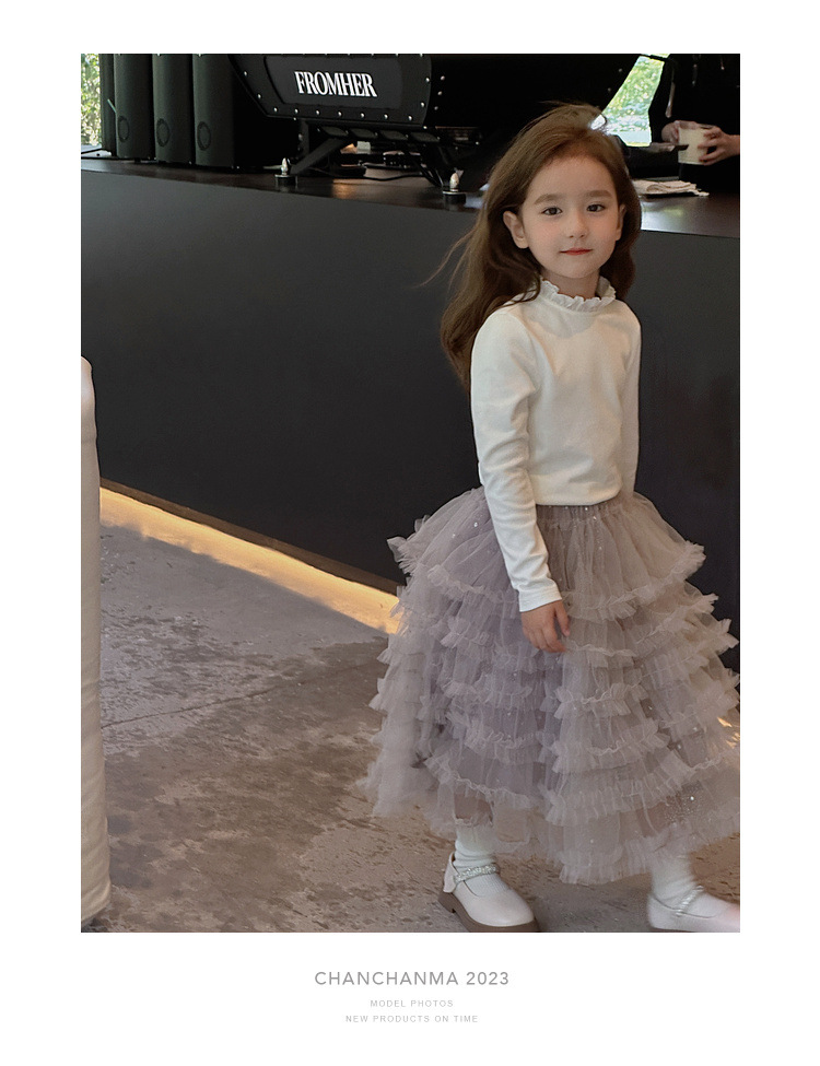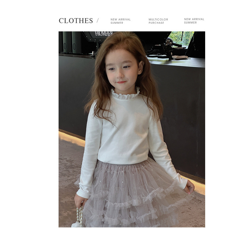소녀의 로터스 칼라 베이스 셔츠 가을 화이트 슬림핏 긴팔 티셔츠 소녀의 세련된 모든 매치 라펠 베이스 셔츠스토어 가기
