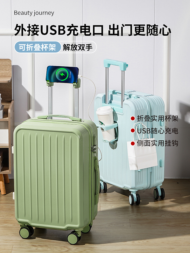 다기능 충전식 트롤리 가방 인터넷 연예인 작은 신선한 비밀번호 상자 2025 새로운 컵 홀더 탑승 가방스토어 가기