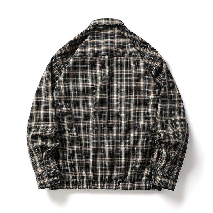 가을 두꺼운 원사 염색 격자 무늬 수정 재킷 남성용 일본 스타일 느슨한 랩 긴팔 재킷 미국 스타일 캐주얼 프록 패션스토어 가기