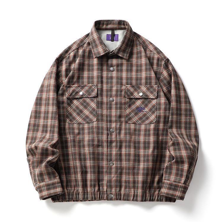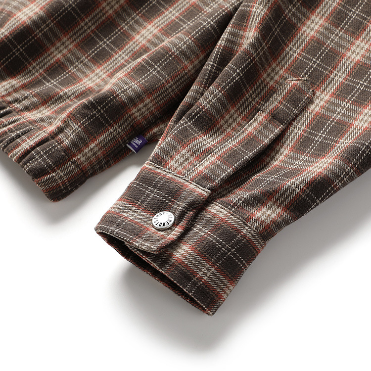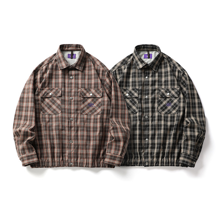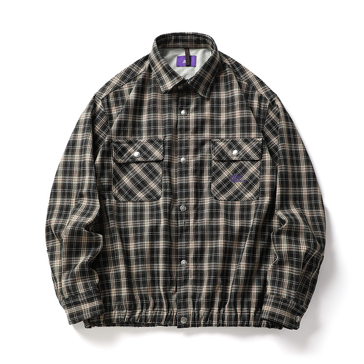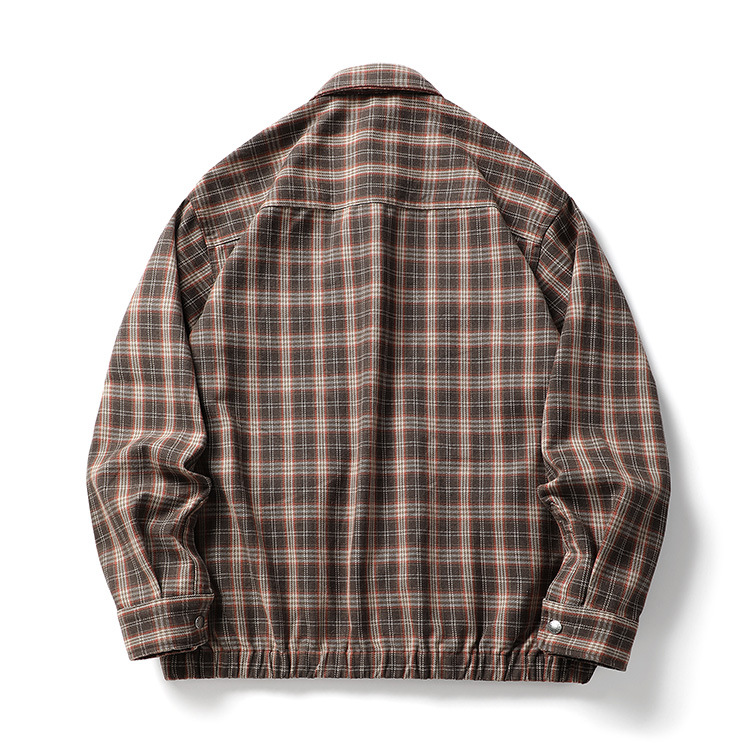 가을 두꺼운 원사 염색 격자 무늬 수정 재킷 남성용 일본 스타일 느슨한 랩 긴팔 재킷 미국 스타일 캐주얼 프록 패션