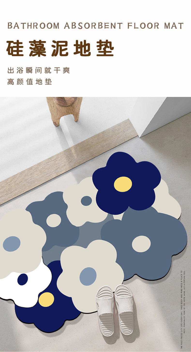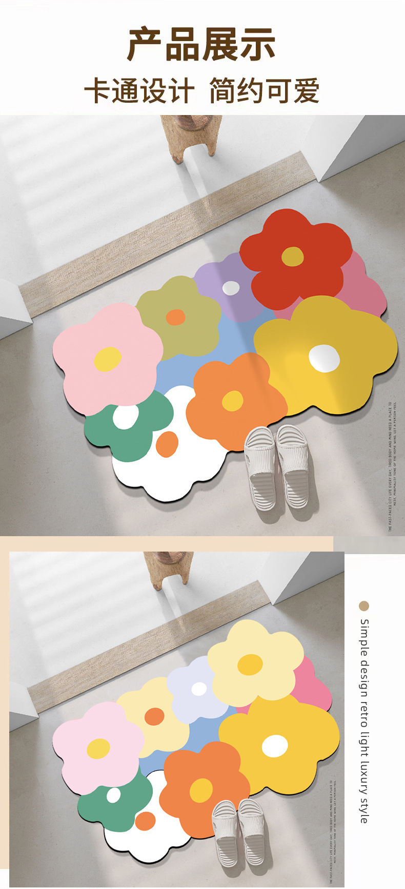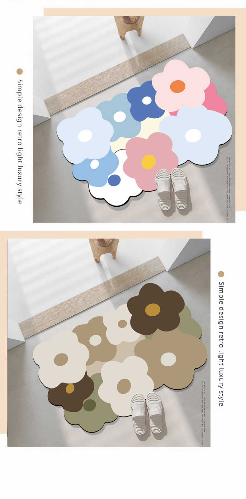 욕실 흡수성 바닥 매트 부드러운 규조 진흙 신선한 꽃 불규칙한 입구 도어 매트 화장실 문 미끄럼 방지 발 매트