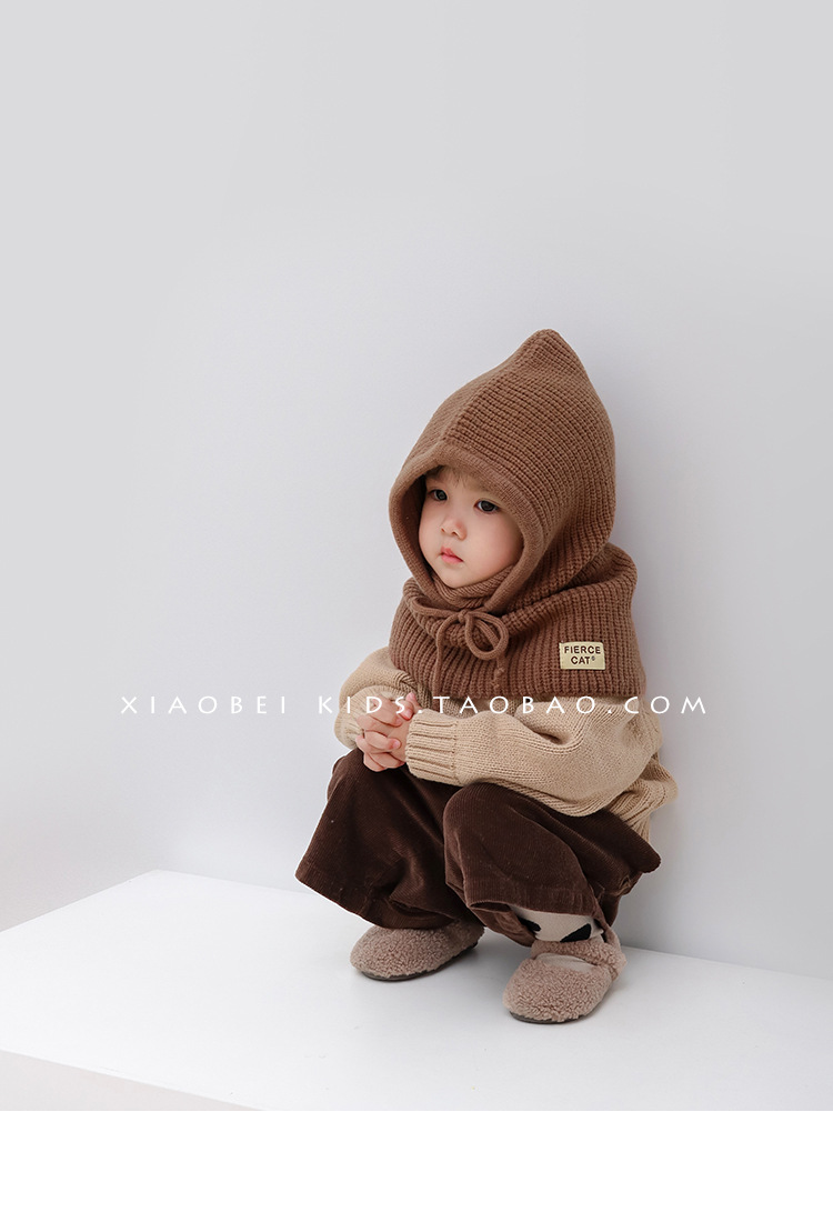 어린이 모자 스카프 통합 모자 가을과 겨울 남아 귀 보호 모자 방풍 남아 아기 울 모자 여아 스카프스토어 가기