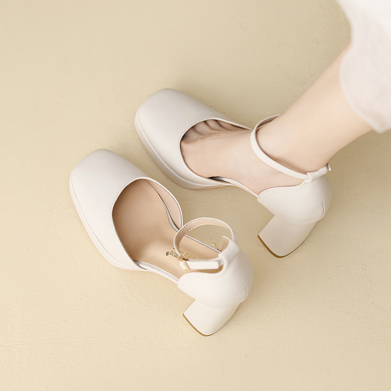 품절, 교환 불가 9612-1 패션 스퀘어 발가락 두꺼운 굽 하이힐 여성용 방수 플랫폼 싱글 슈즈