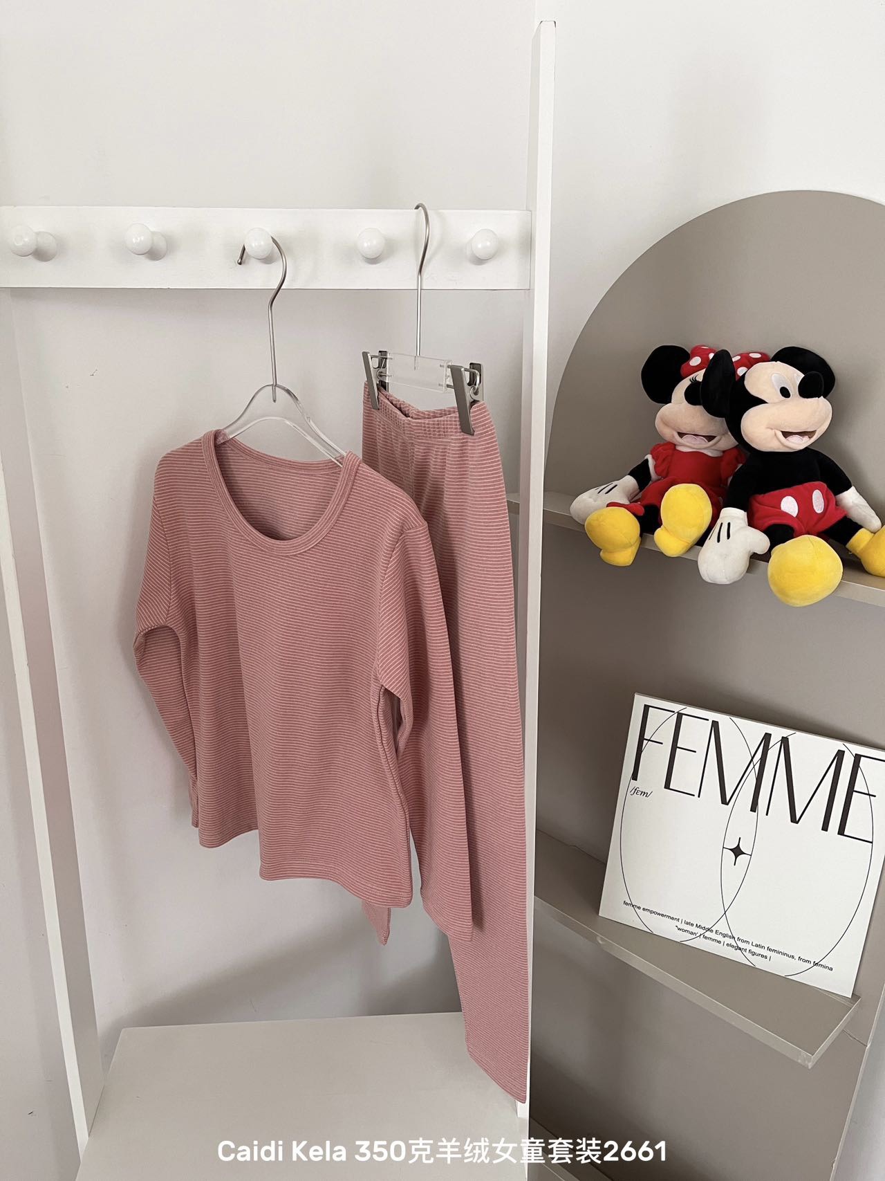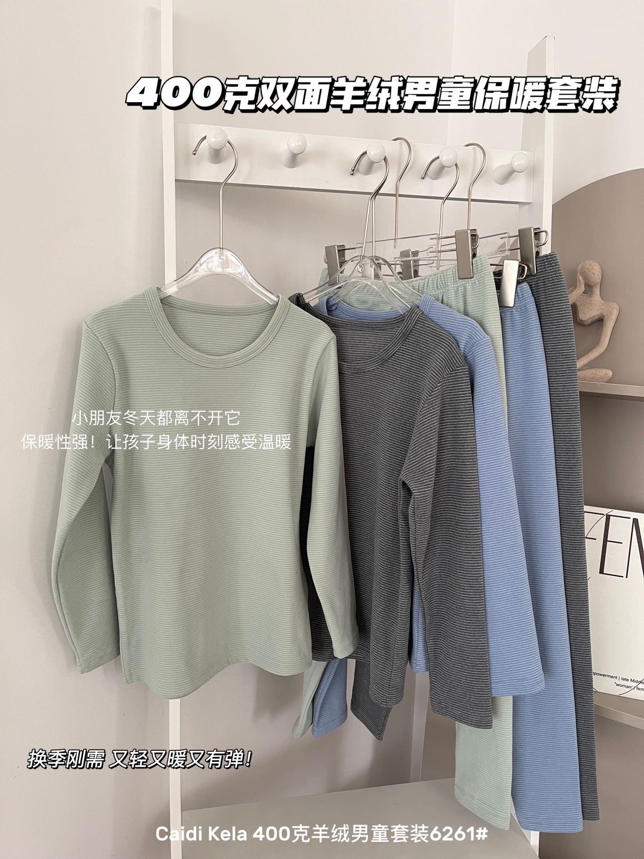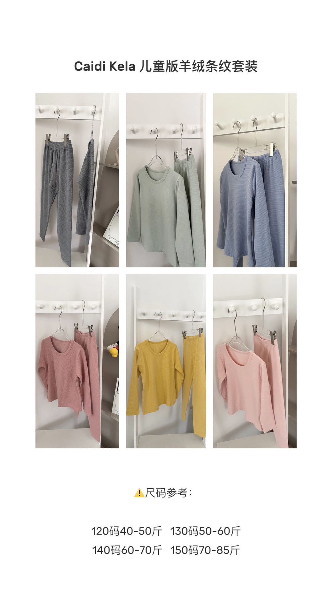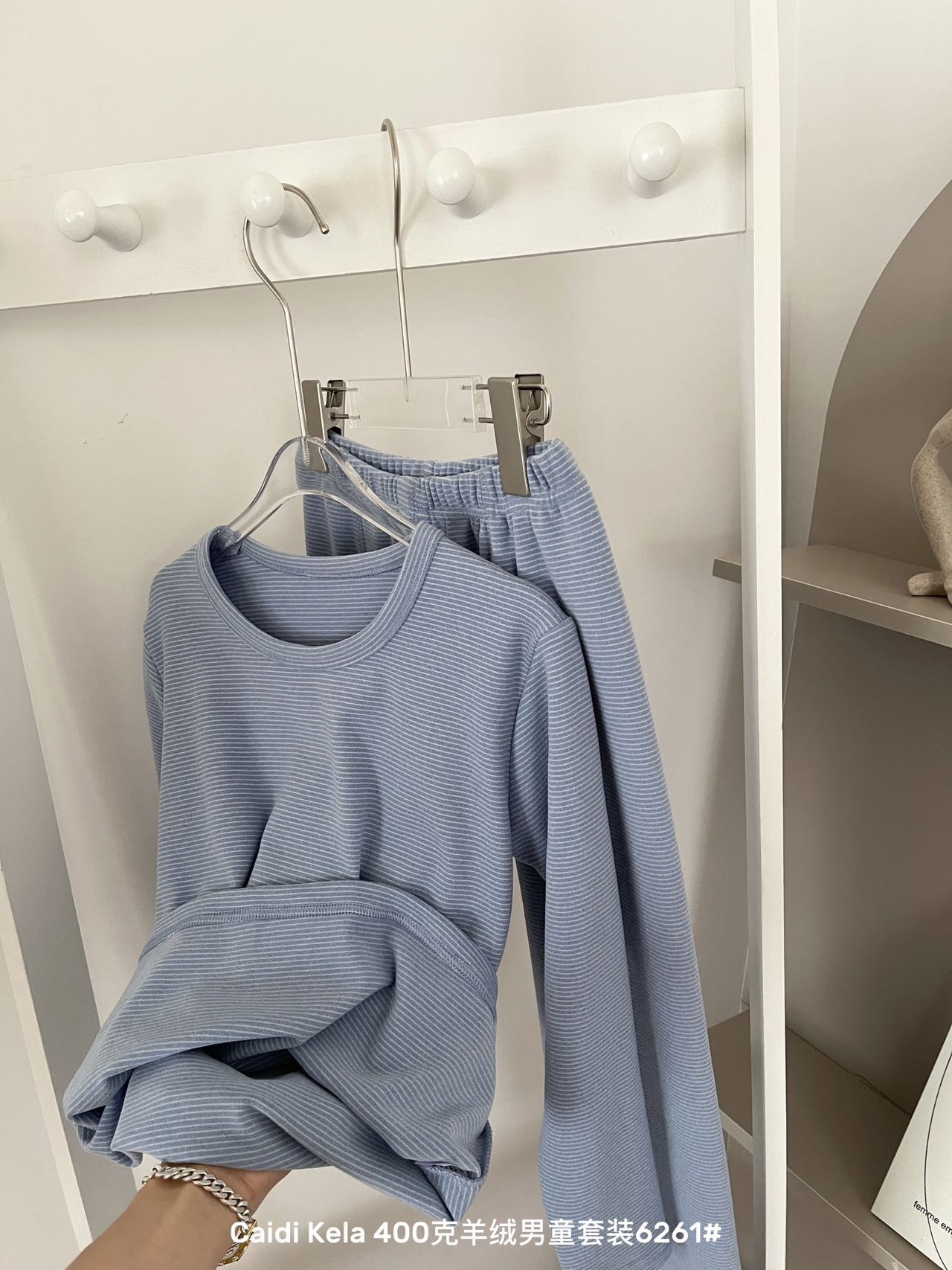 가을과 겨울 새로운 어린이 캐시미어 가정 의류 스트라이프 세트 잠옷 기본 속옷 따뜻한 슬림핏 라운드 넥 두꺼운 가방스토어 가기