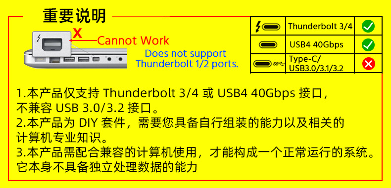 노트북 외부 그래픽 Thunderbolt GPU 도크 번개 3/4 그래픽 도크
