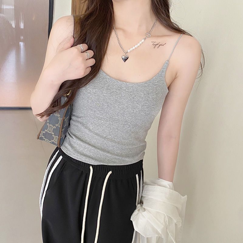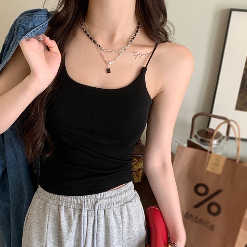 캐미솔 여성용 원피스 고정 가슴 패드 단색 아름다운 등 슬림핏 이너 착용 아우터 착용 순면 베이스 민소매 탑