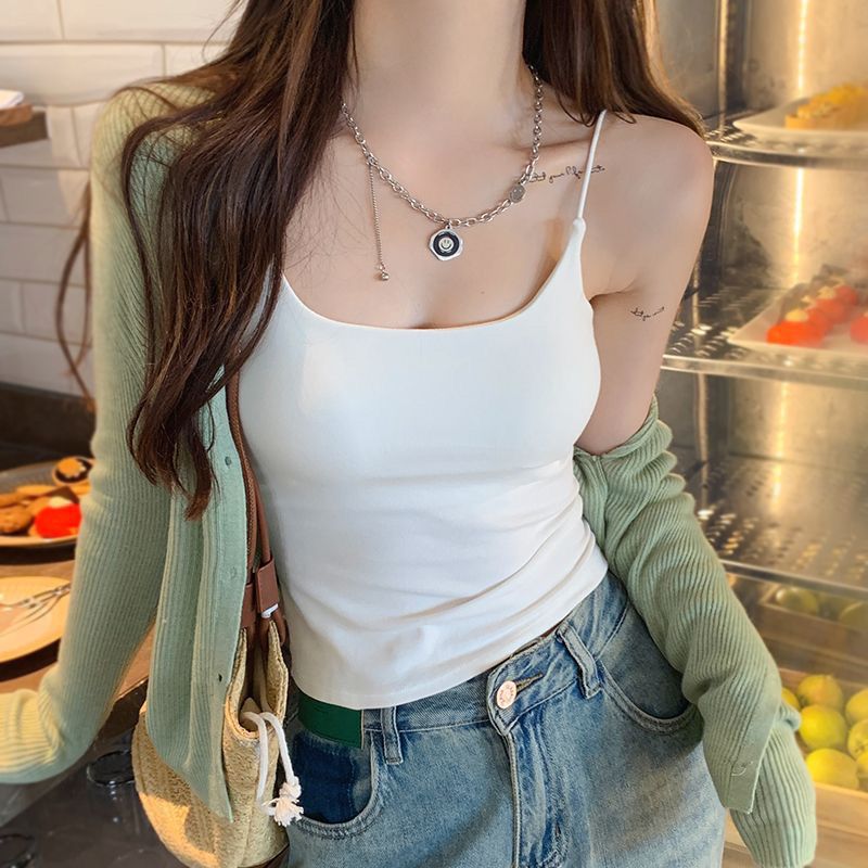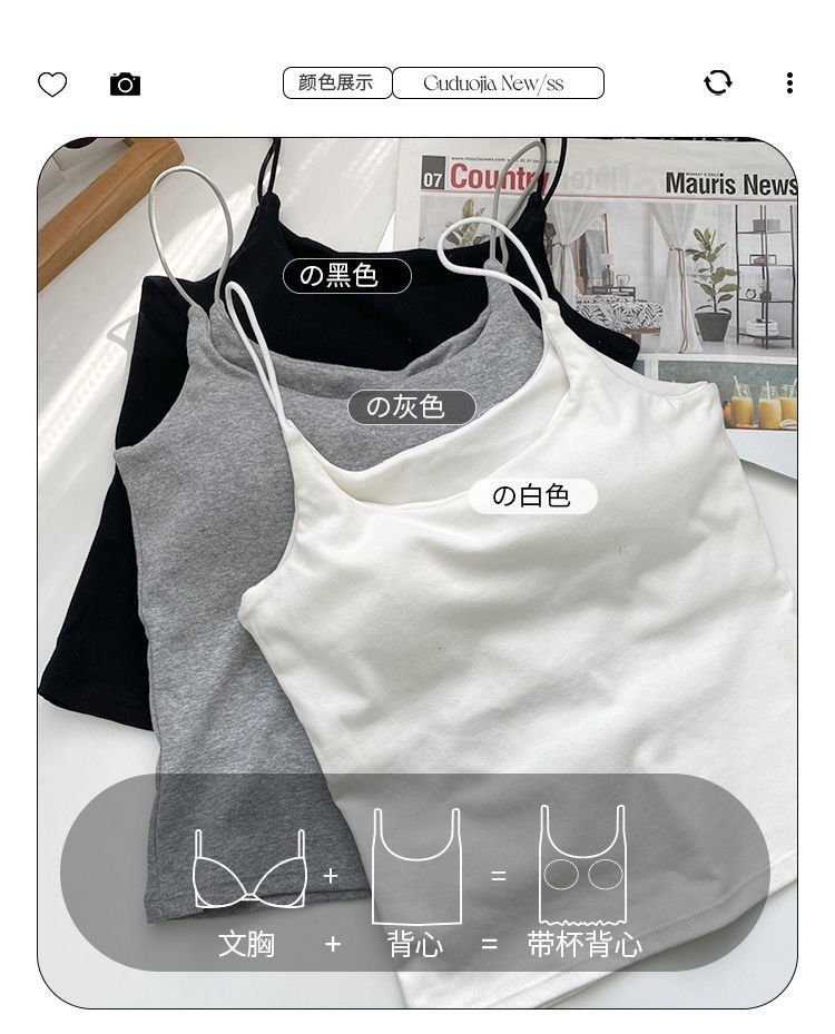 캐미솔 여성용 원피스 고정 가슴 패드 단색 아름다운 등 슬림핏 이너 착용 아우터 착용 순면 베이스 민소매 탑스토어 가기