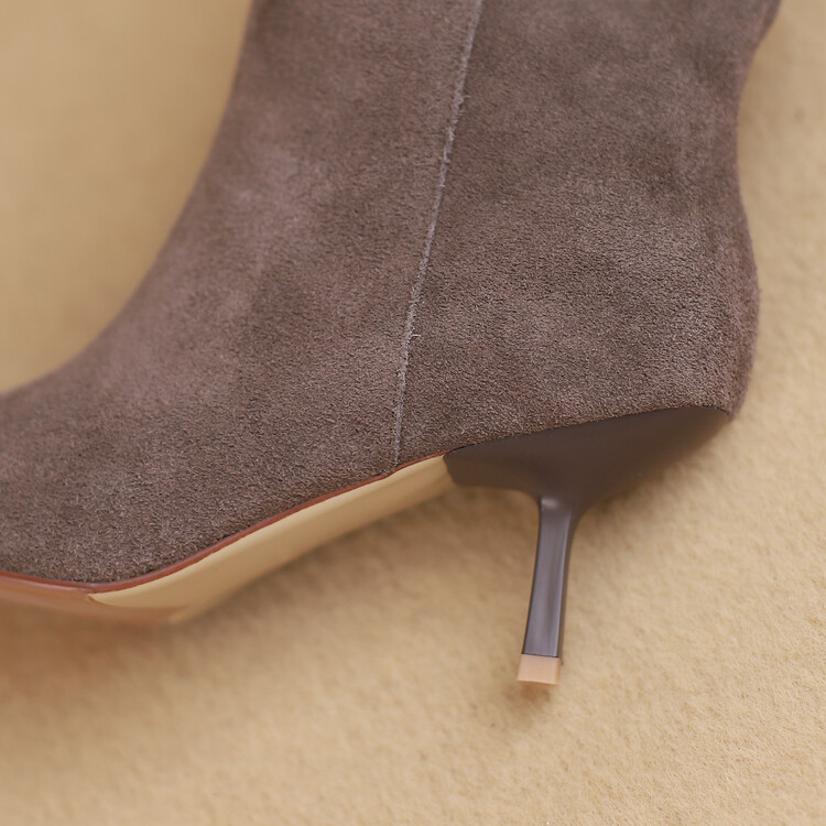 패션 다리 고급 ~ 젖빛 가죽 힙 부츠 뾰족한 단일 얇은 뒤꿈치 주름 소 스웨이드 하이힐 기사 부츠 여성용 하이 부츠스토어 가기