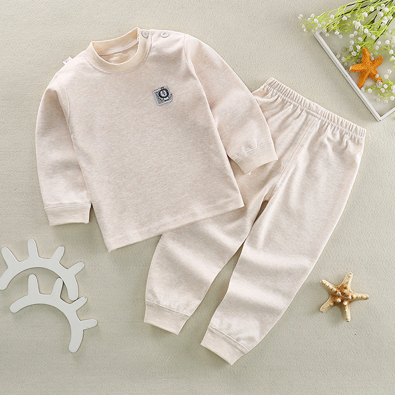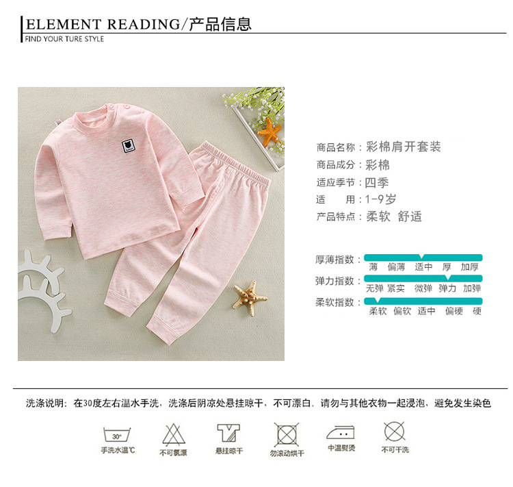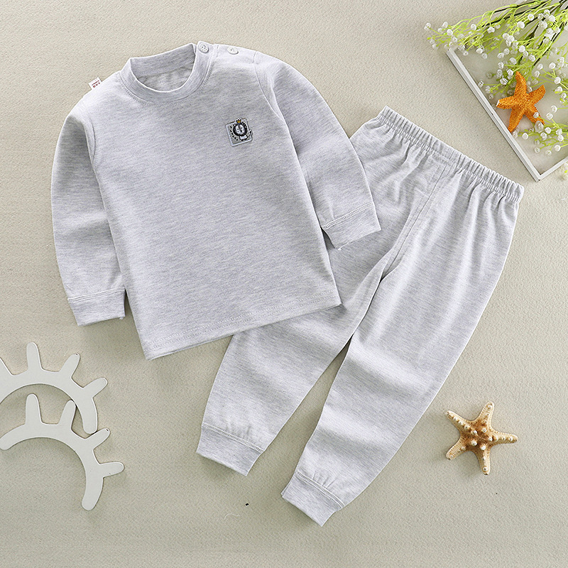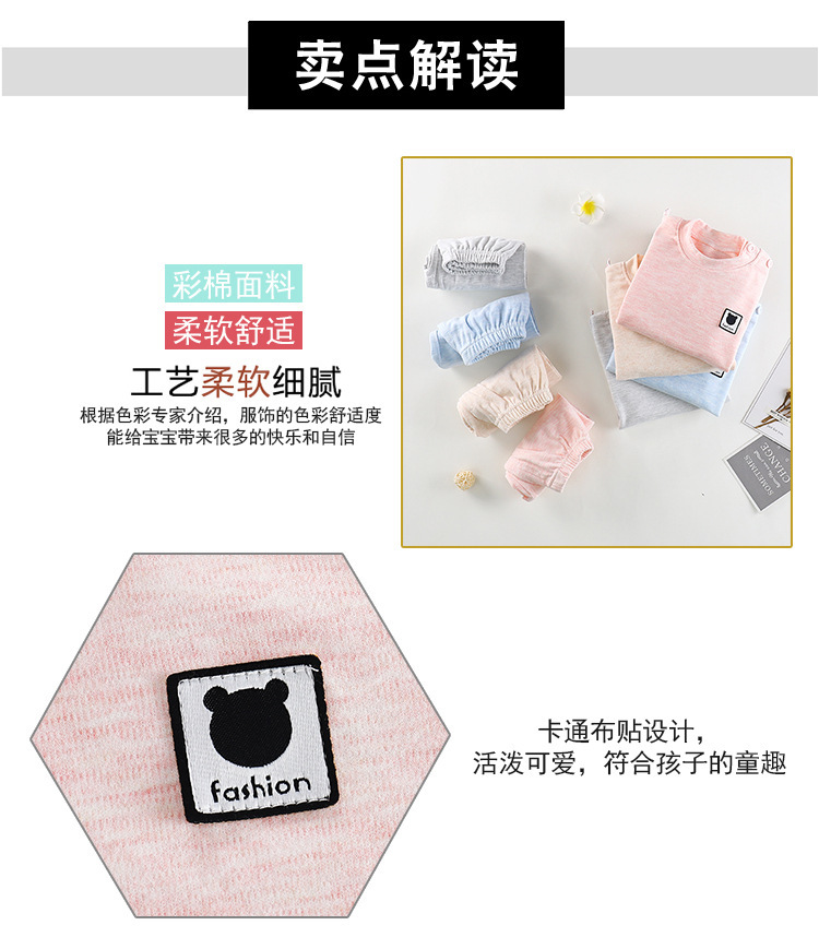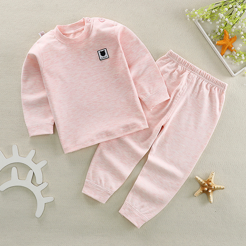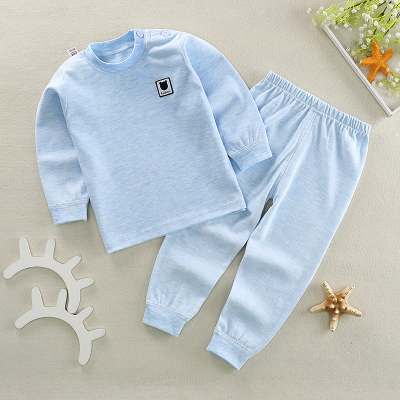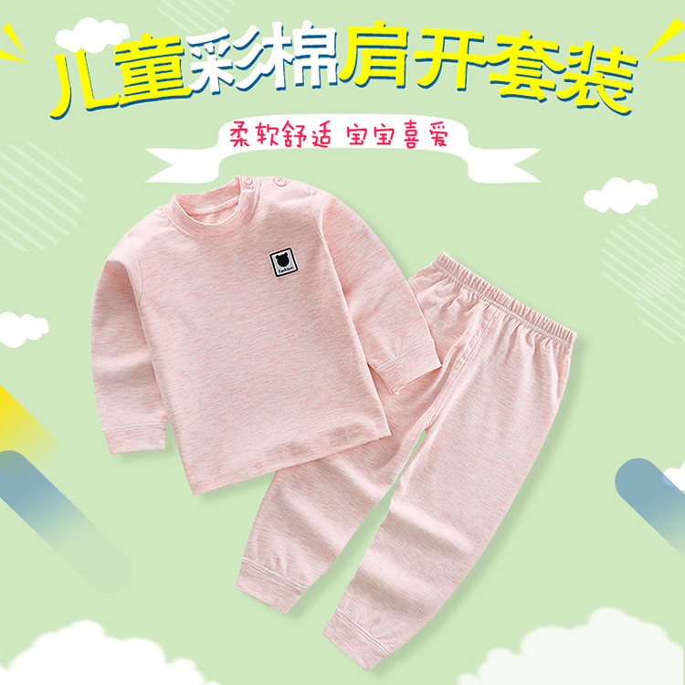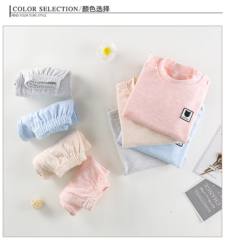 2023 새로운 어린이 컬러 면 속옷 세트 소년과 소녀 단색 잠옷 중형 및 대형 어린이 하이 칼라 가을 바지스토어 가기