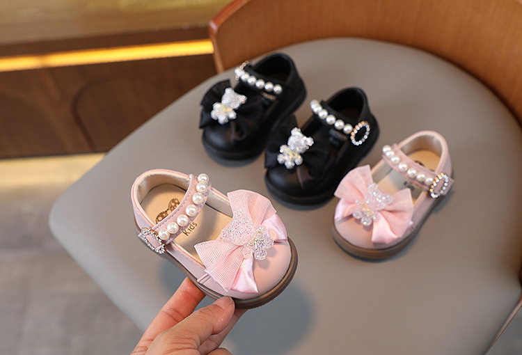 봄과 가을 어린이 사각 입 가죽 신발 공주 신발 부드러운 바닥 아기 유아 신발 여성용 아기 신발 여아 완두콩 신발 싱글 신발스토어 가기