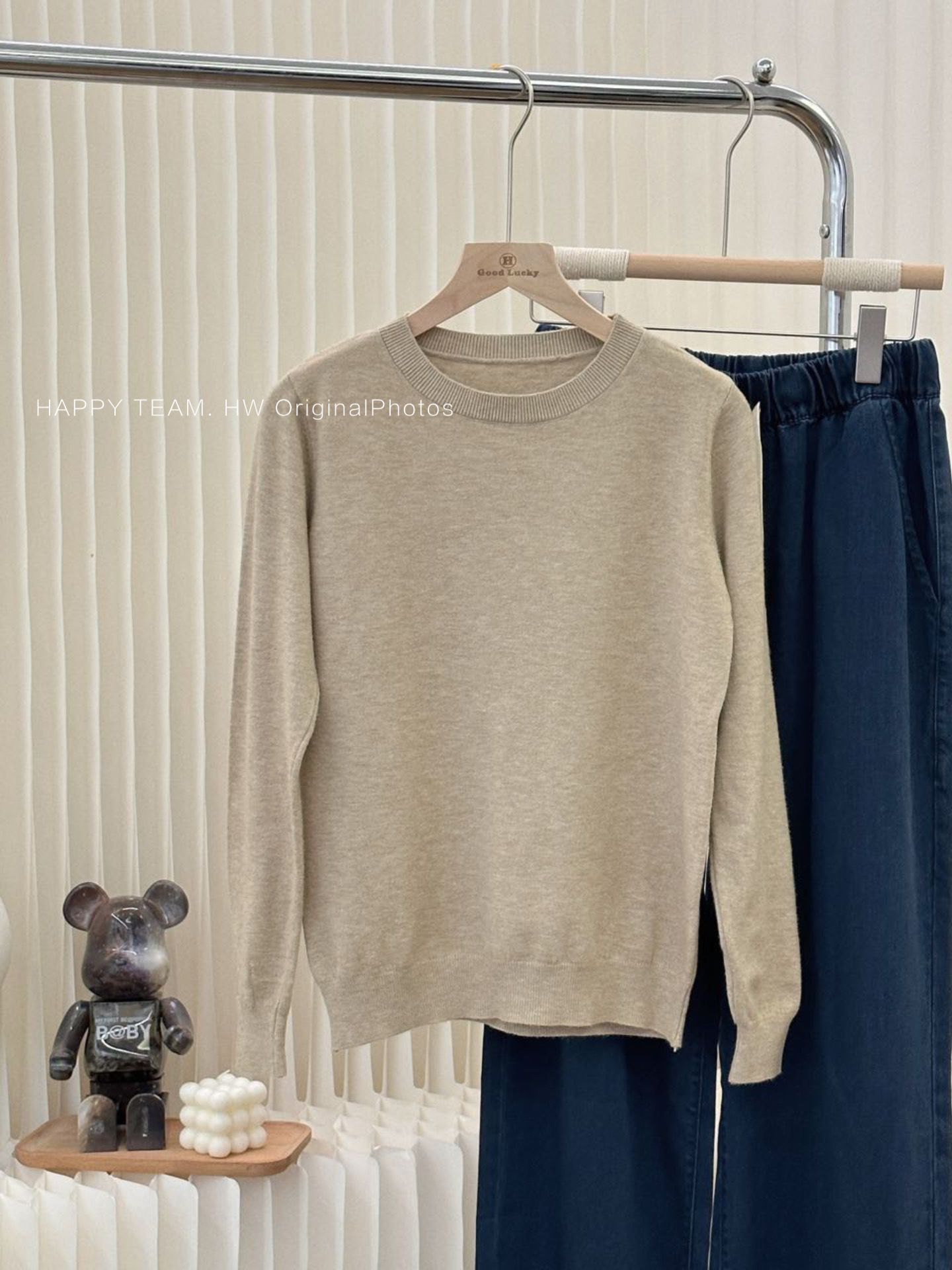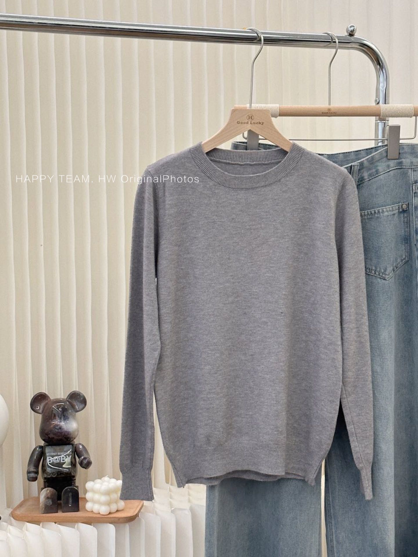 형제 공장 형제 같은 스타일 클래식 라운드 넥 니트 스웨터 긴 소매 스웨터 여성 풀오버 가을과 겨울 얇은베이스 셔츠 느슨한스토어 가기