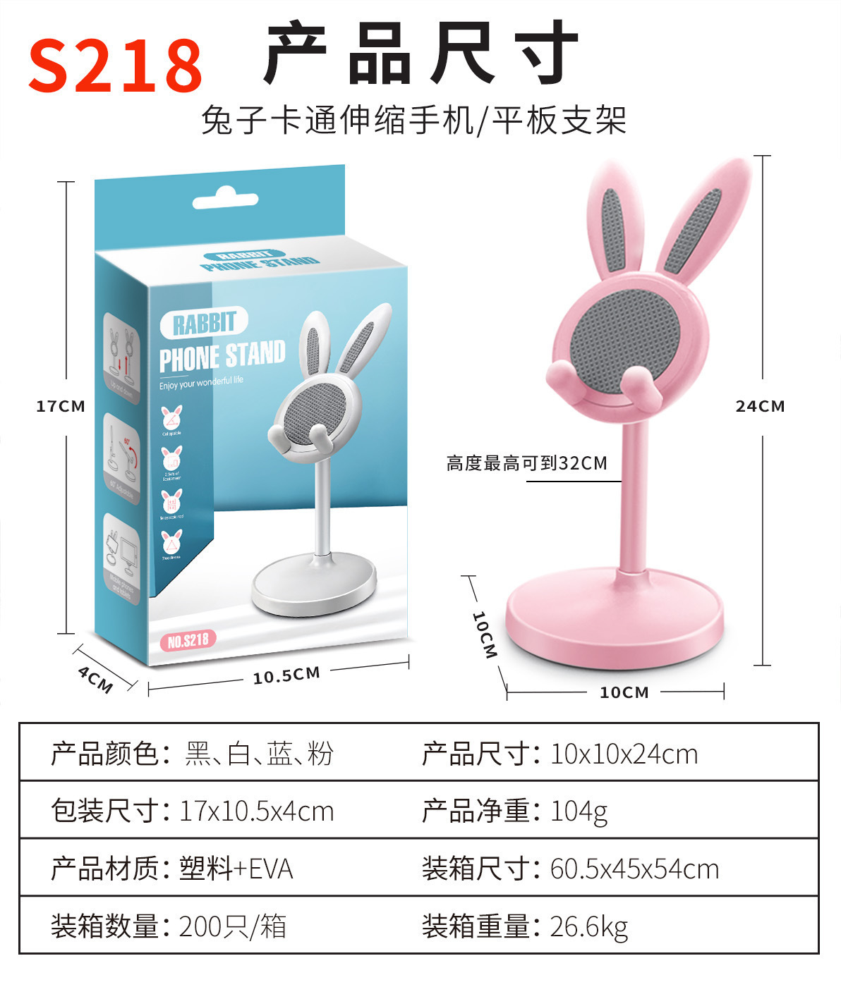 만화 토끼 휴대 전화 스탠드 데스크탑 리프팅 조정 가능한 텔레스코픽 태블릿 컴퓨터 학생 학습 게으른 스탠드스토어 가기
