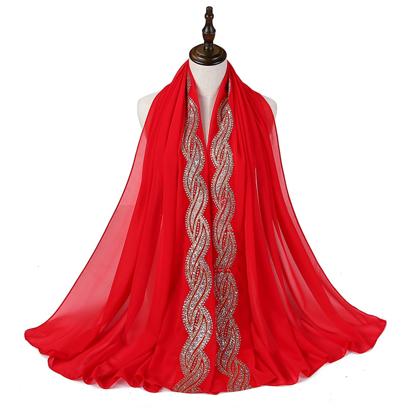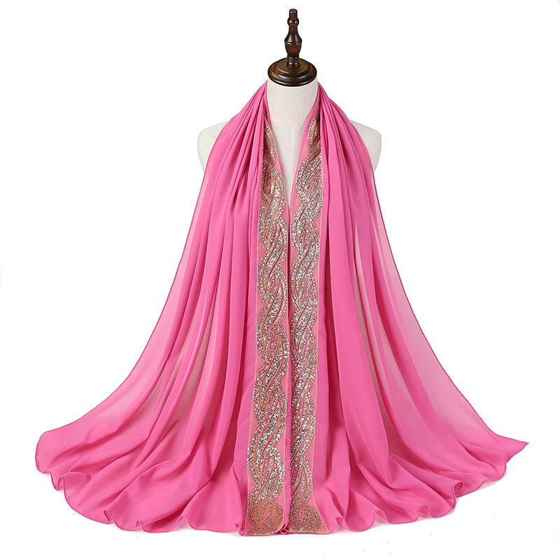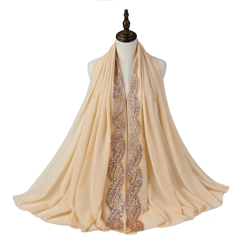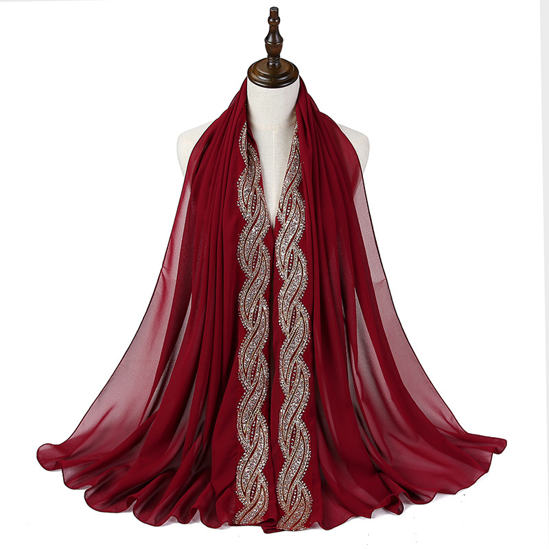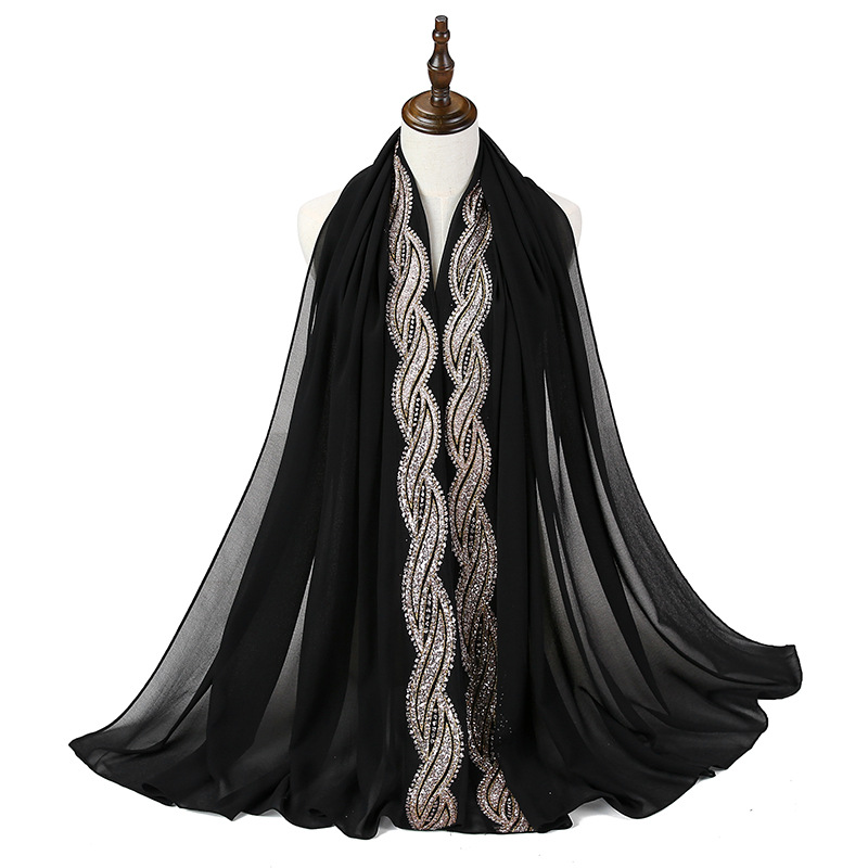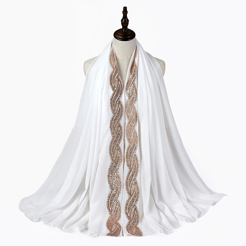새로운 진주 쉬폰 골드 레이스 롱 스카프 여성의 발가락 스카프 도매 말레이시아 인도네시아 스카프스토어 가기
