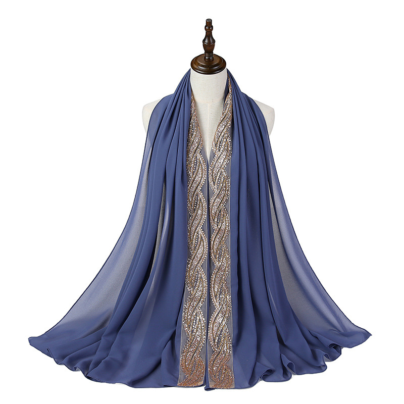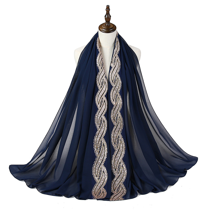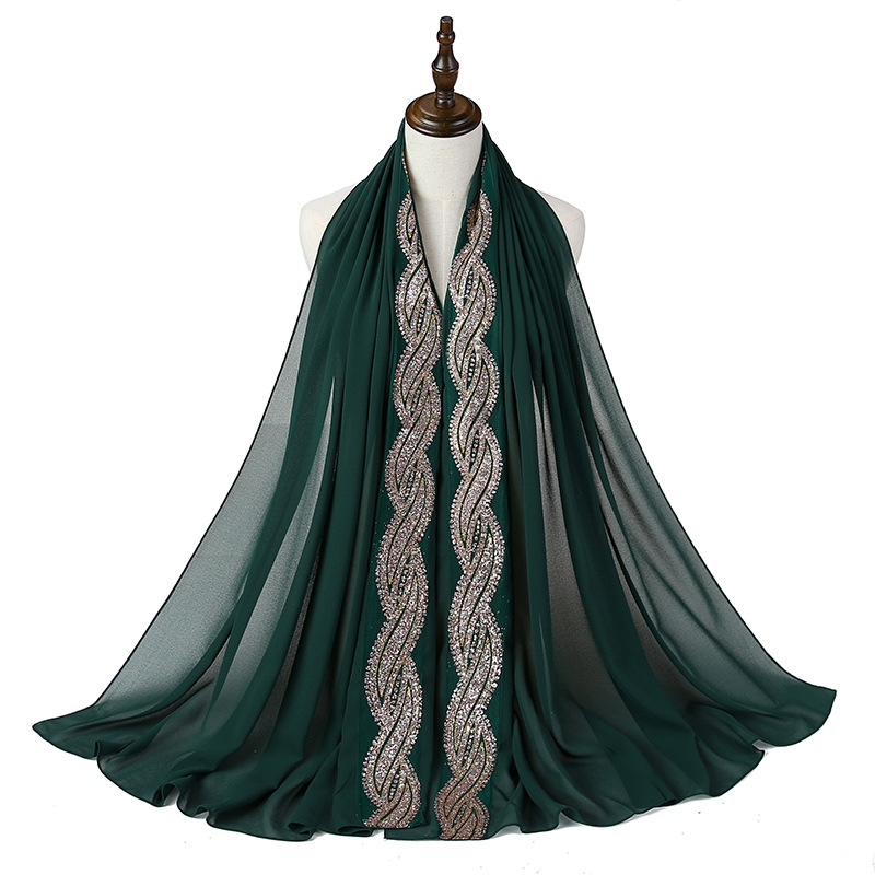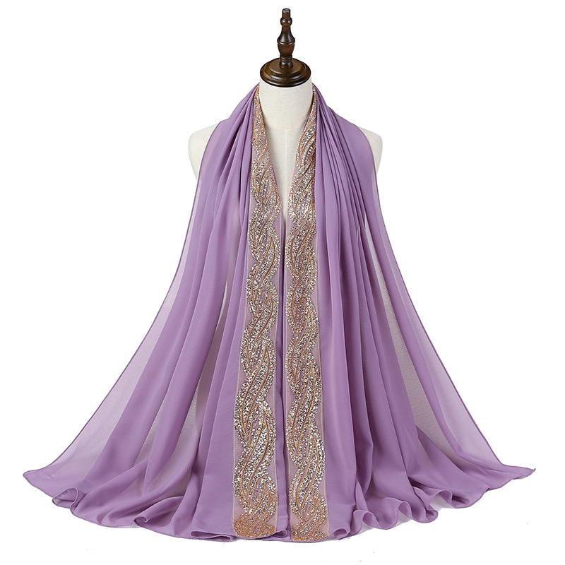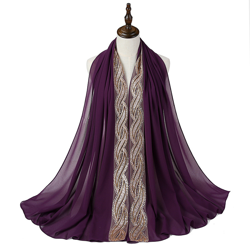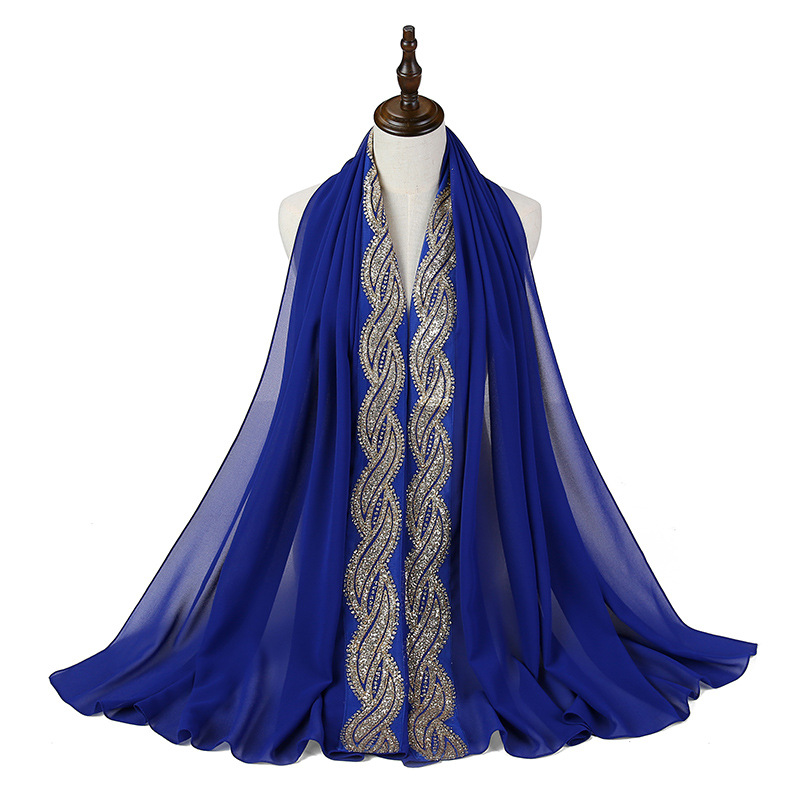 새로운 진주 쉬폰 골드 레이스 롱 스카프 여성의 발가락 스카프 도매 말레이시아 인도네시아 스카프