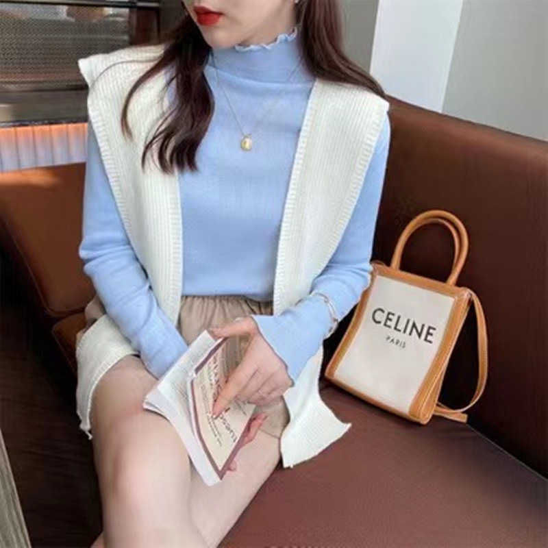 Maillard 컬러 내부 베이스 셔츠 여성의 가을과 겨울 2023 머플 하프 터틀넥 스웨터 스웨터 탑스토어 가기