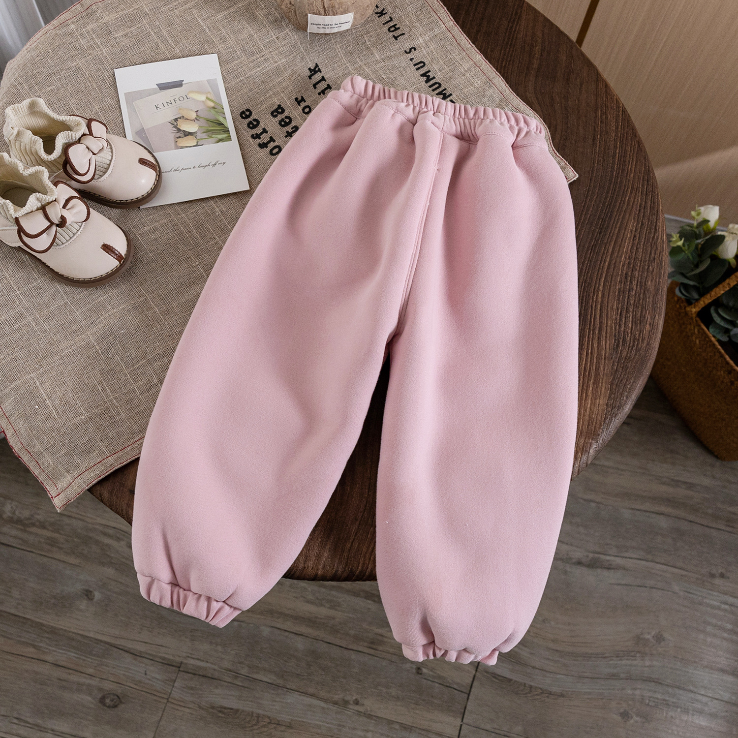 겨울 착용 어린이 아기 소녀의 귀여운 만화 붙여 넣기 기모 두꺼운 스웨트 팬츠 소녀 따뜻한 느슨한 다리 캐주얼 바지