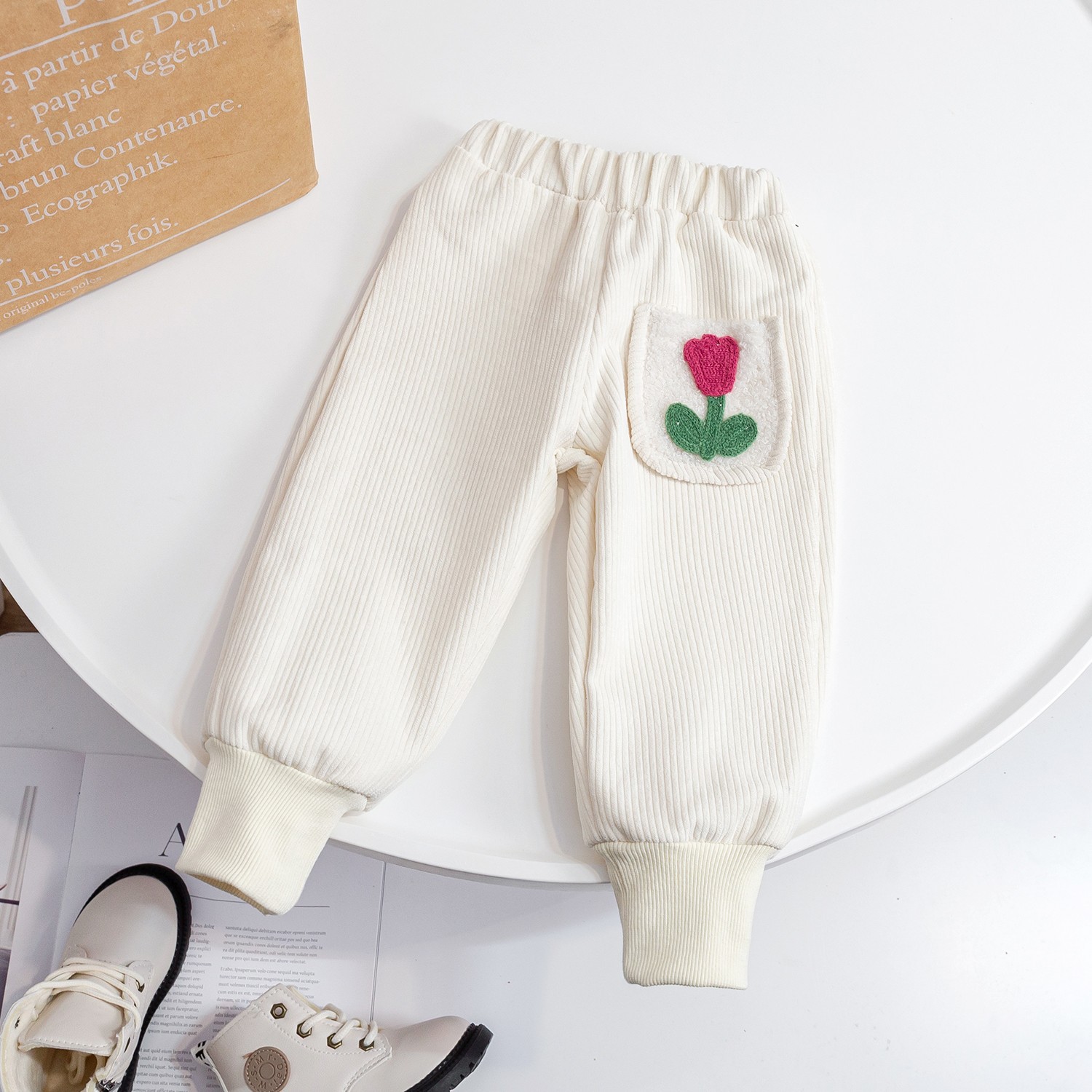 冬装儿童女宝宝可爱卡通贴布加绒加厚卫裤女童保暖宽松收脚休闲裤