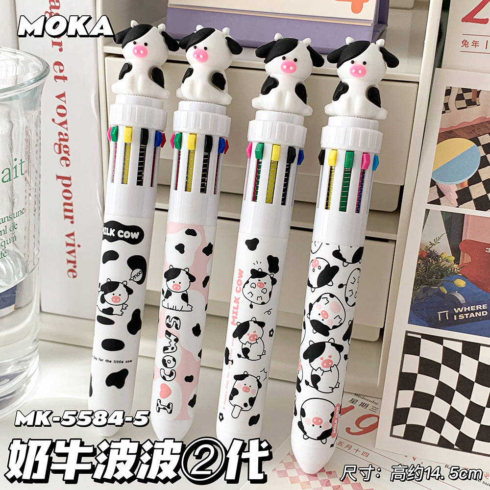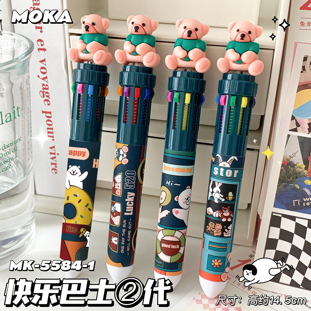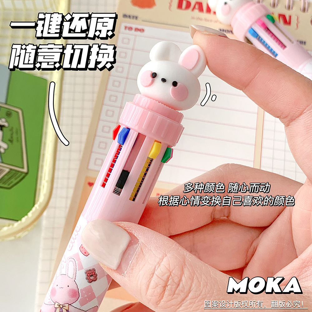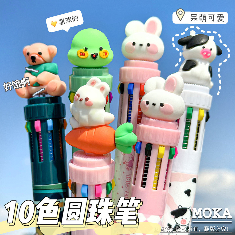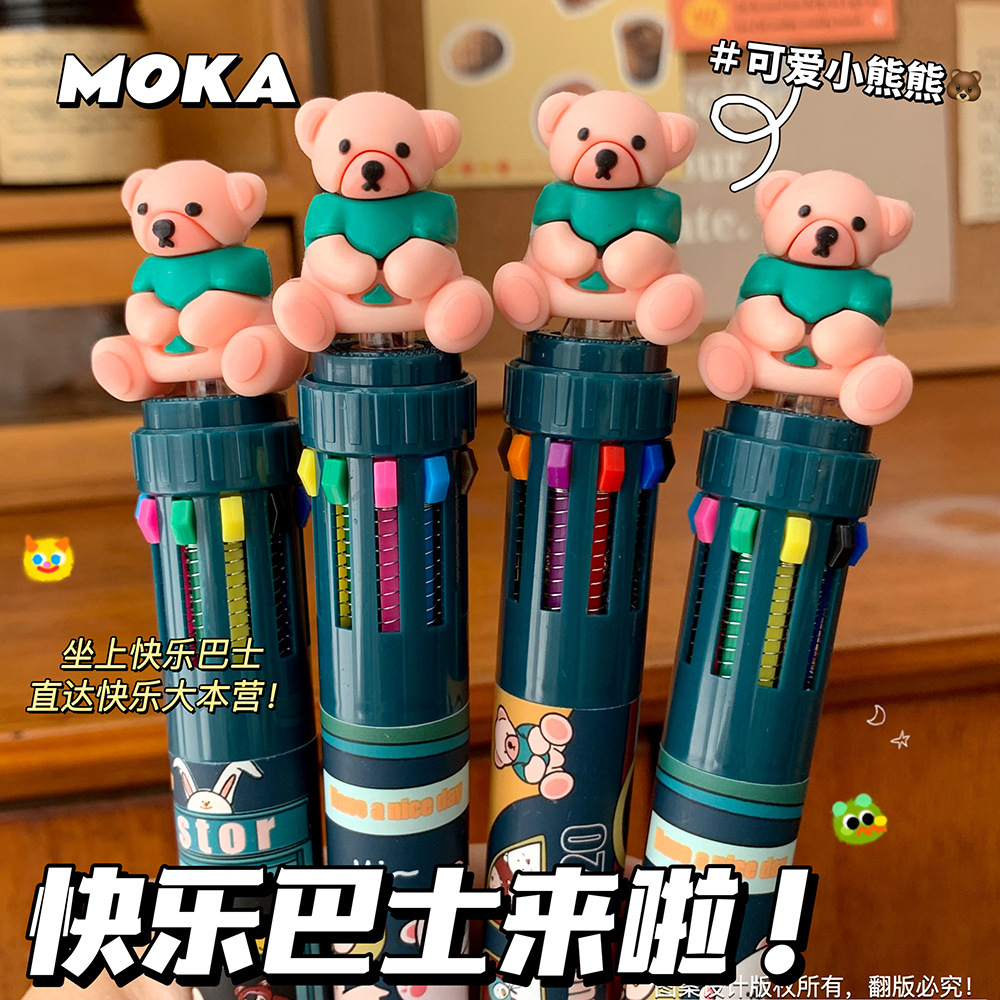 MOKA 동물 만화 머리 10 색 펜 여자 학생 프레스 볼펜 귀여운 동물 머리 총알 볼펜