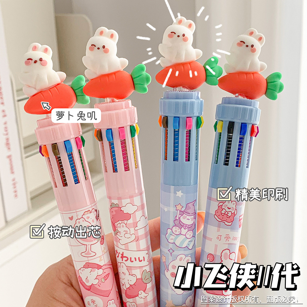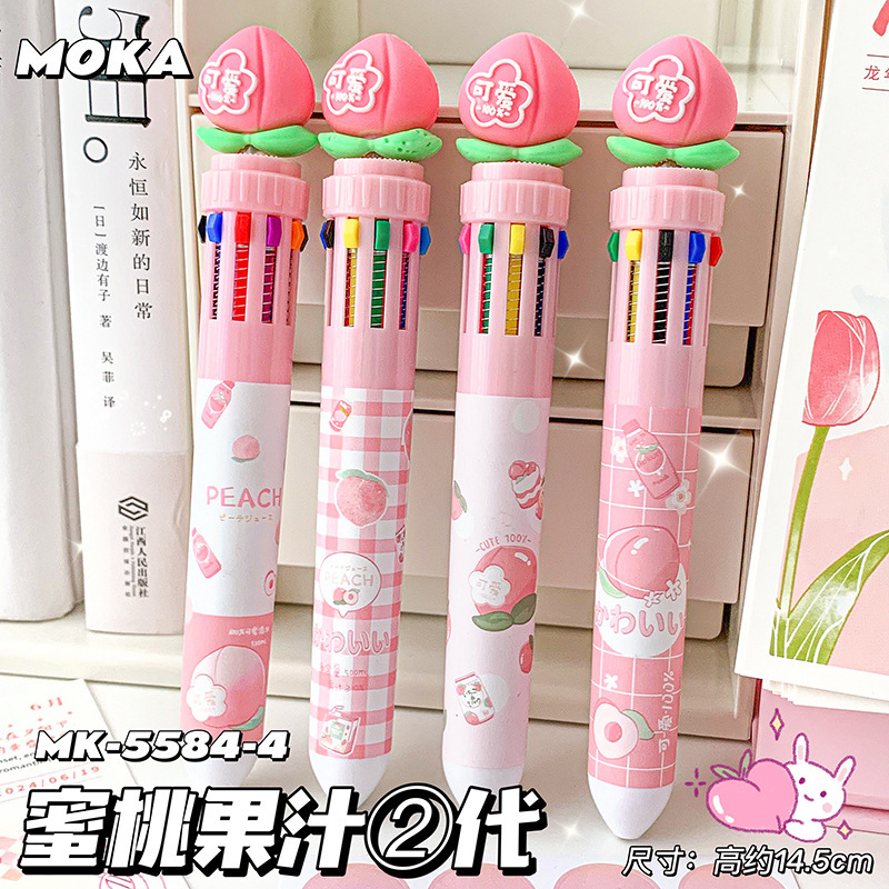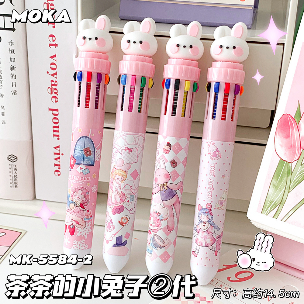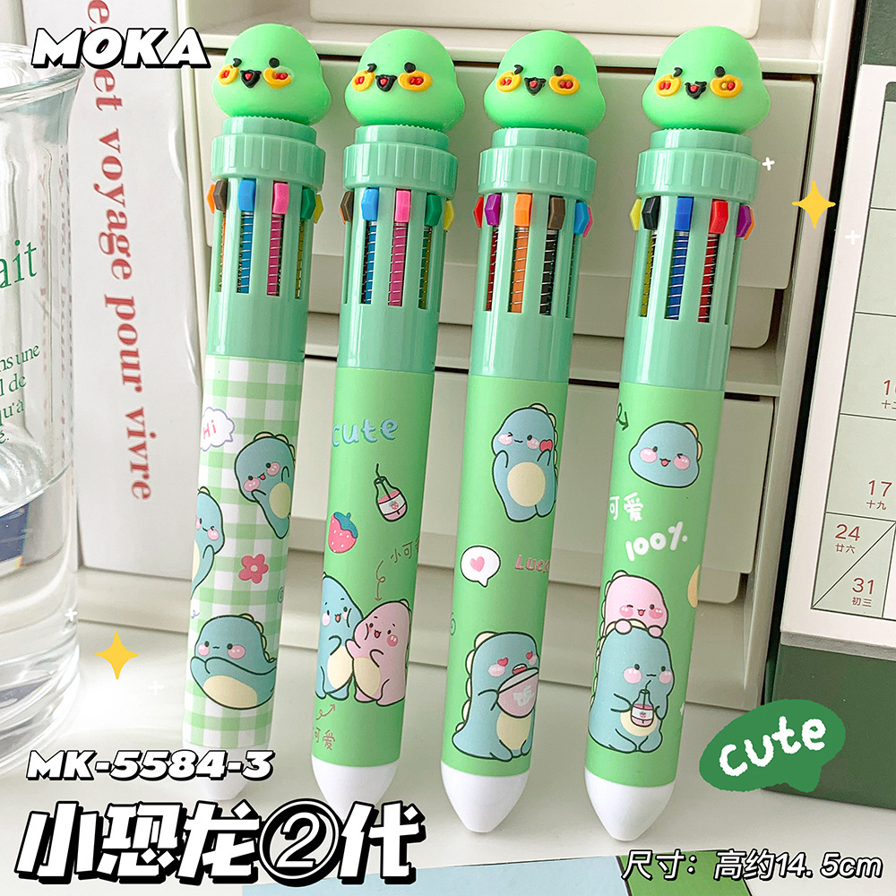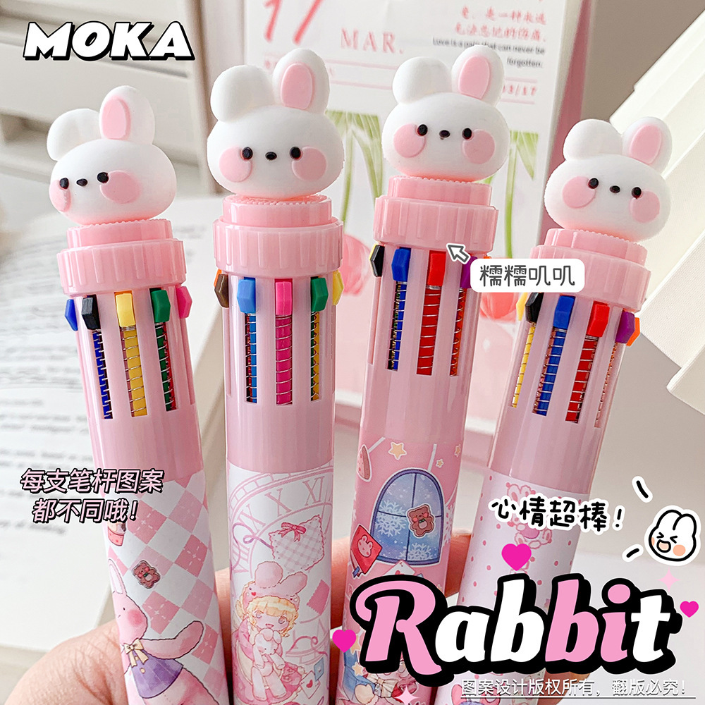 MOKA 동물 만화 머리 10 색 펜 여자 학생 프레스 볼펜 귀여운 동물 머리 총알 볼펜
