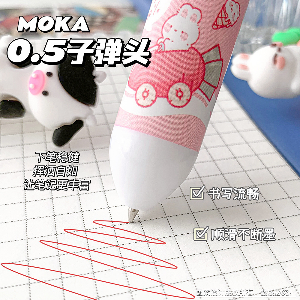 MOKA 동물 만화 머리 10 색 펜 여자 학생 프레스 볼펜 귀여운 동물 머리 총알 볼펜스토어 가기
