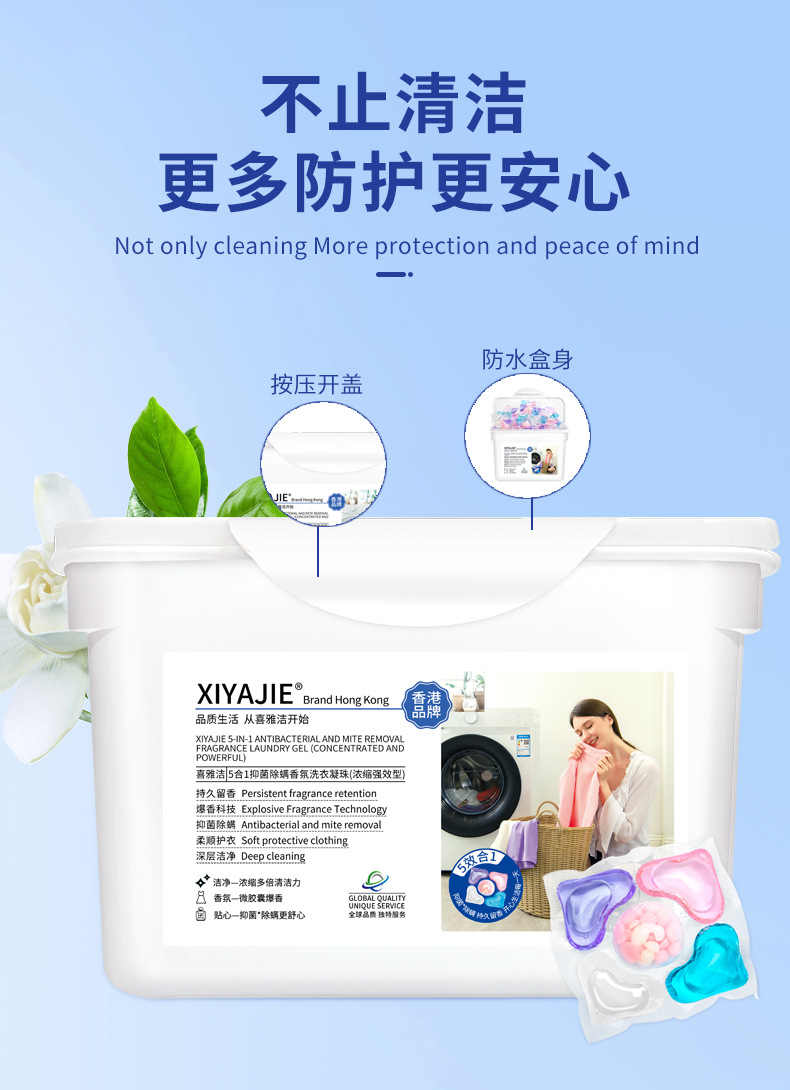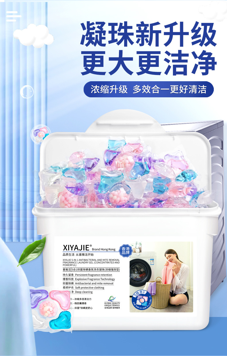 Xiyajie 5-캐비티 세탁 비즈 올인원 깨끗하고 호환되는 세탁 비즈 딥 클리닝 농축 세탁 볼스토어 가기