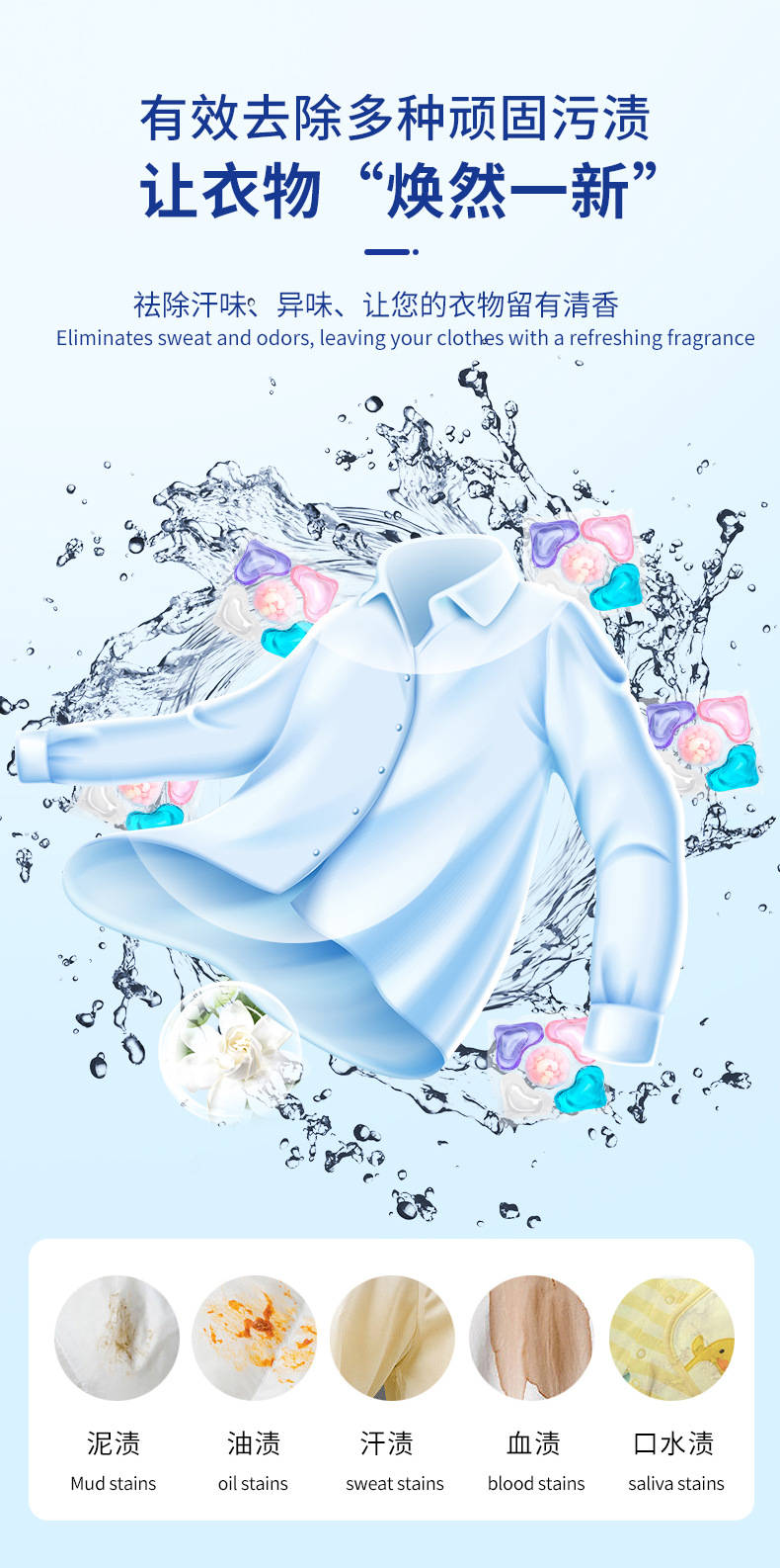 Xiyajie 5-캐비티 세탁 비즈 올인원 깨끗하고 호환되는 세탁 비즈 딥 클리닝 농축 세탁 볼