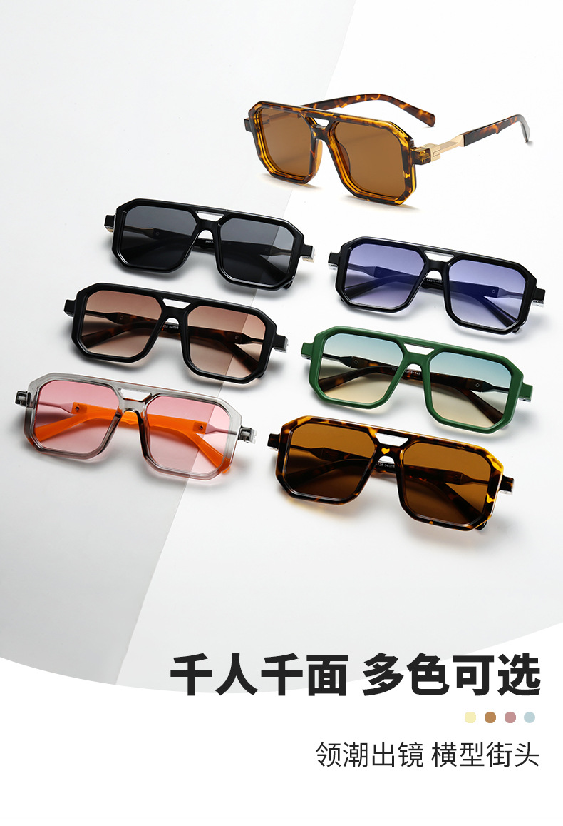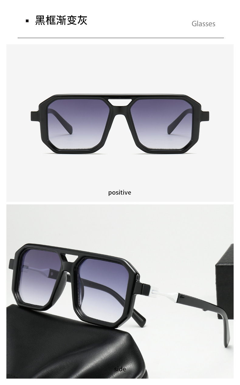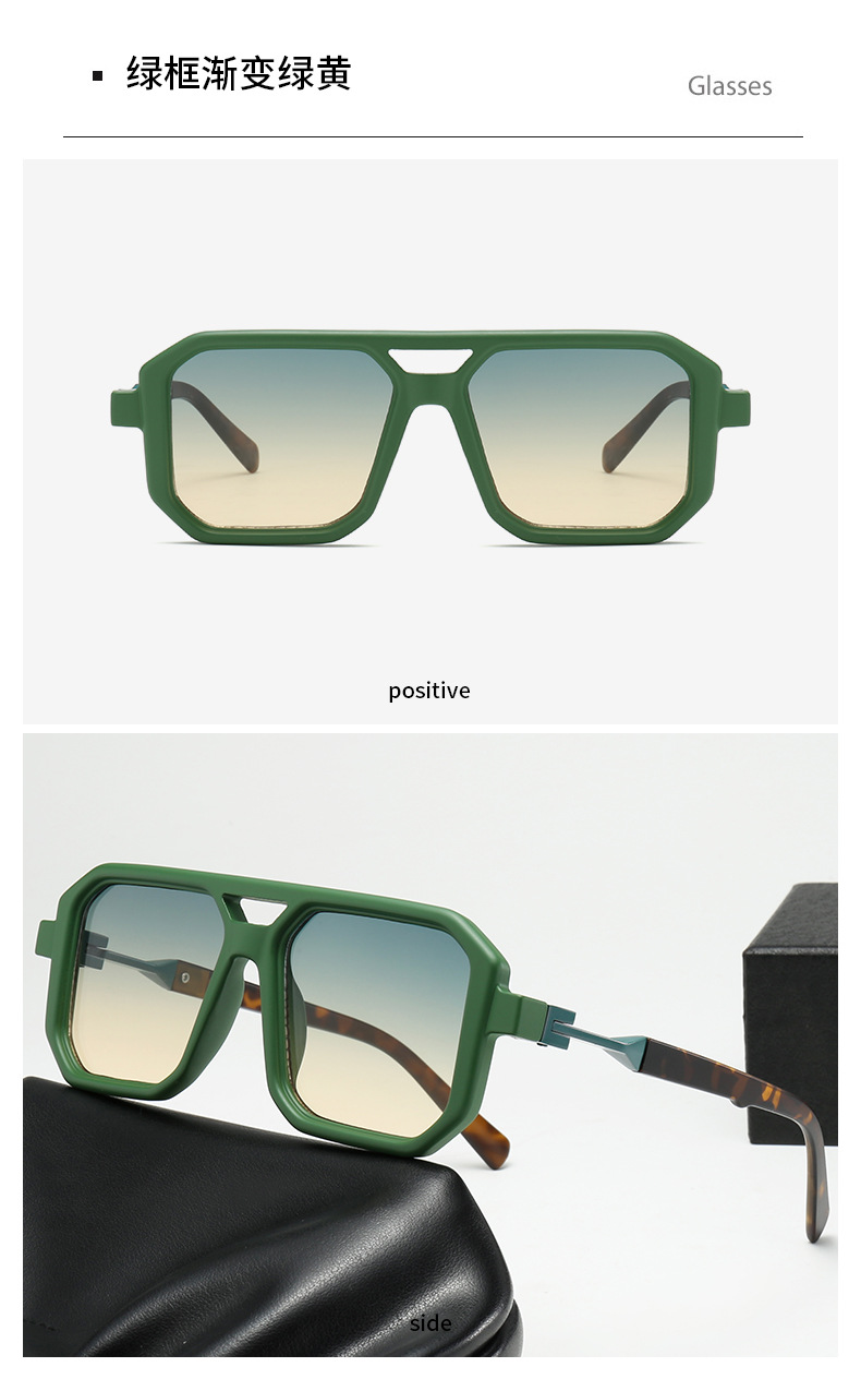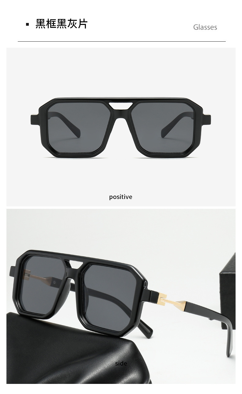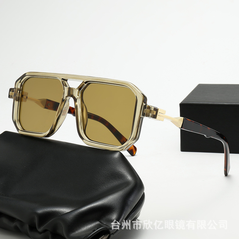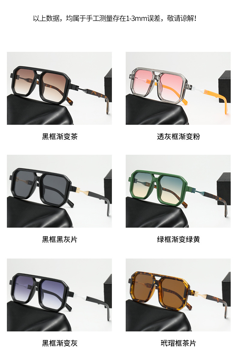 2025 크로스보더 신형 사각 선글라스 유럽과 미국 패션 복고풍 단순 더블 빔 파일럿 프레임 인터넷 연예인 선글라스