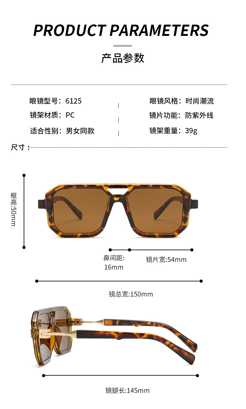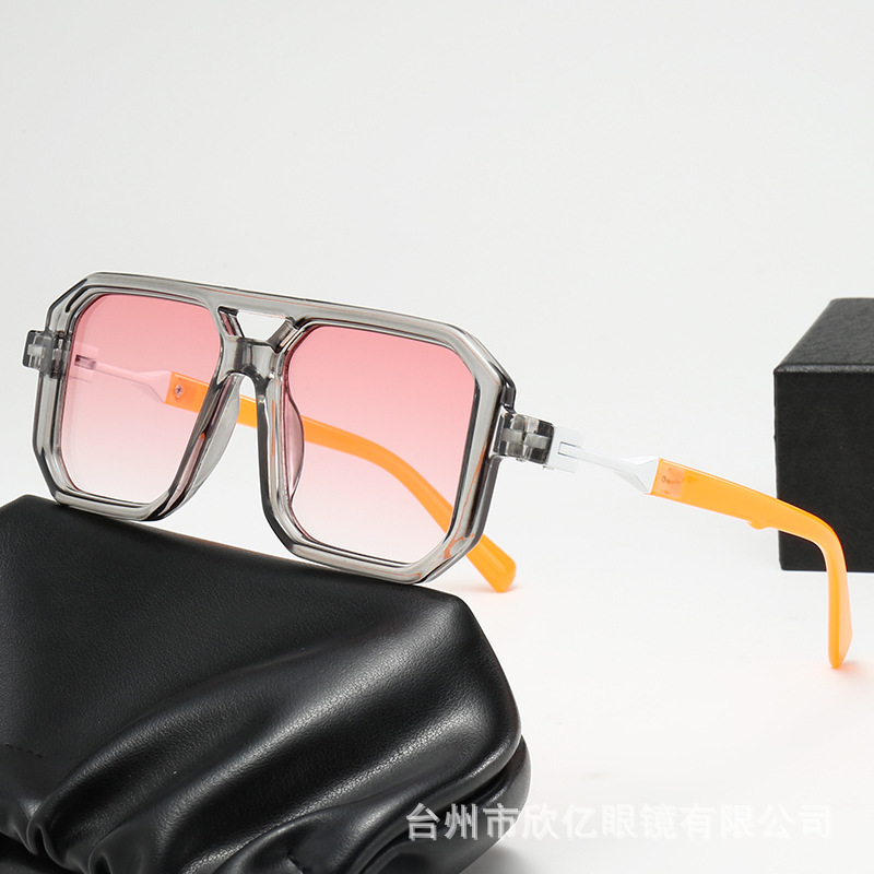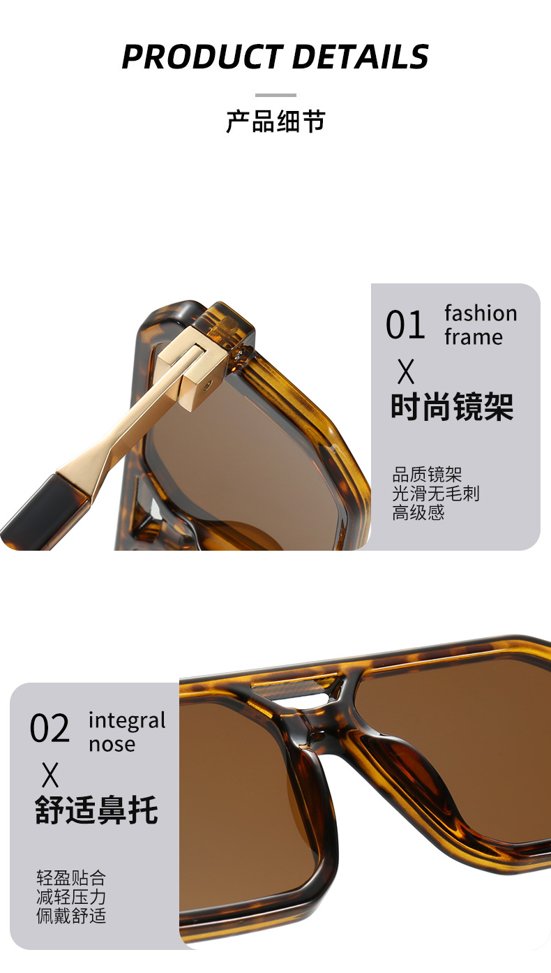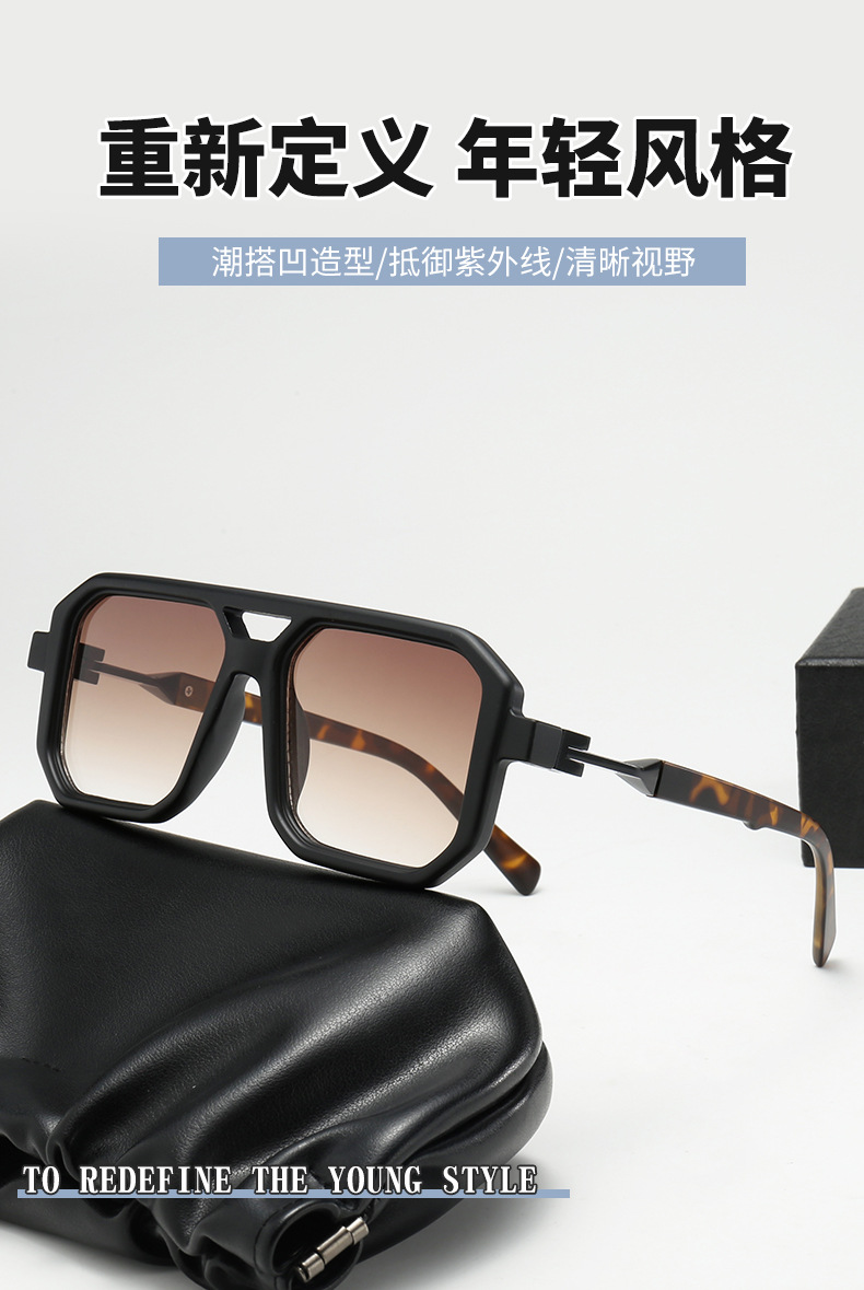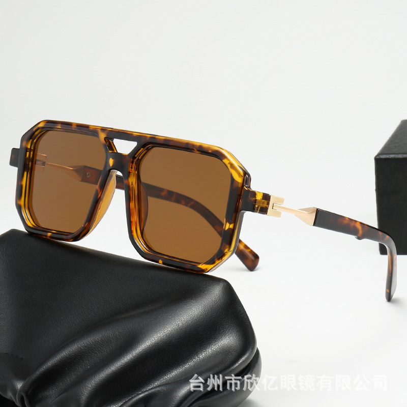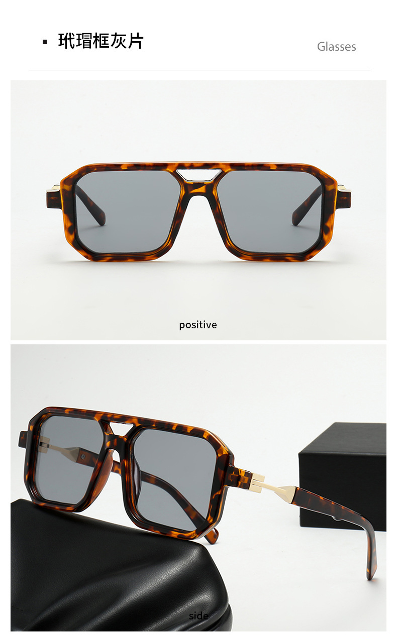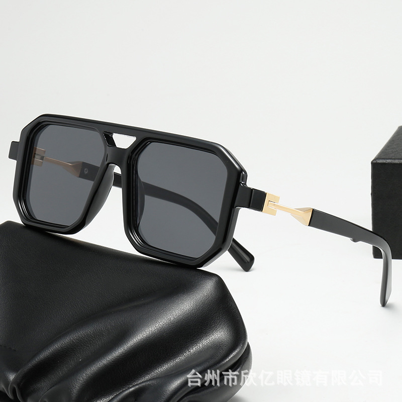 2025 크로스보더 신형 사각 선글라스 유럽과 미국 패션 복고풍 단순 더블 빔 파일럿 프레임 인터넷 연예인 선글라스