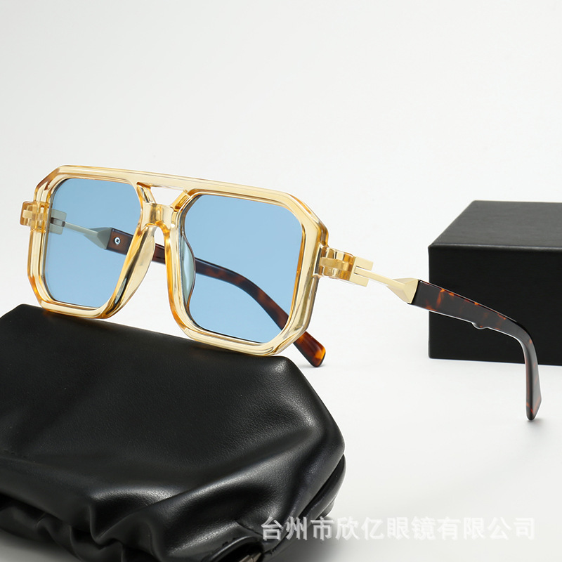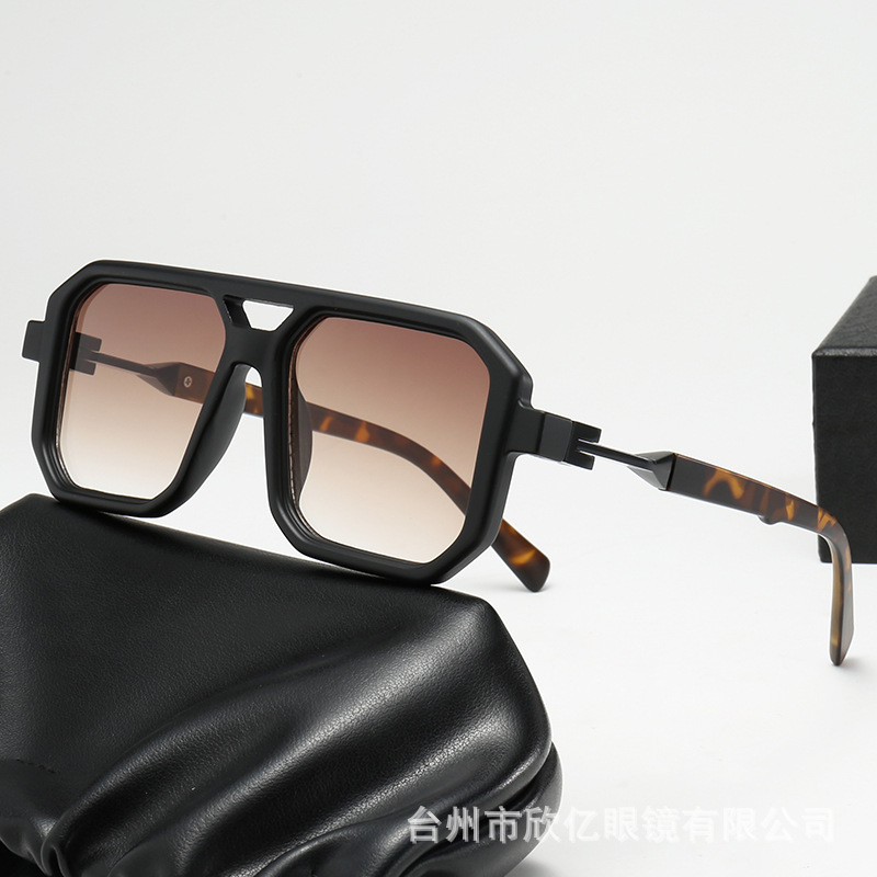 2025 크로스보더 신형 사각 선글라스 유럽과 미국 패션 복고풍 단순 더블 빔 파일럿 프레임 인터넷 연예인 선글라스스토어 가기