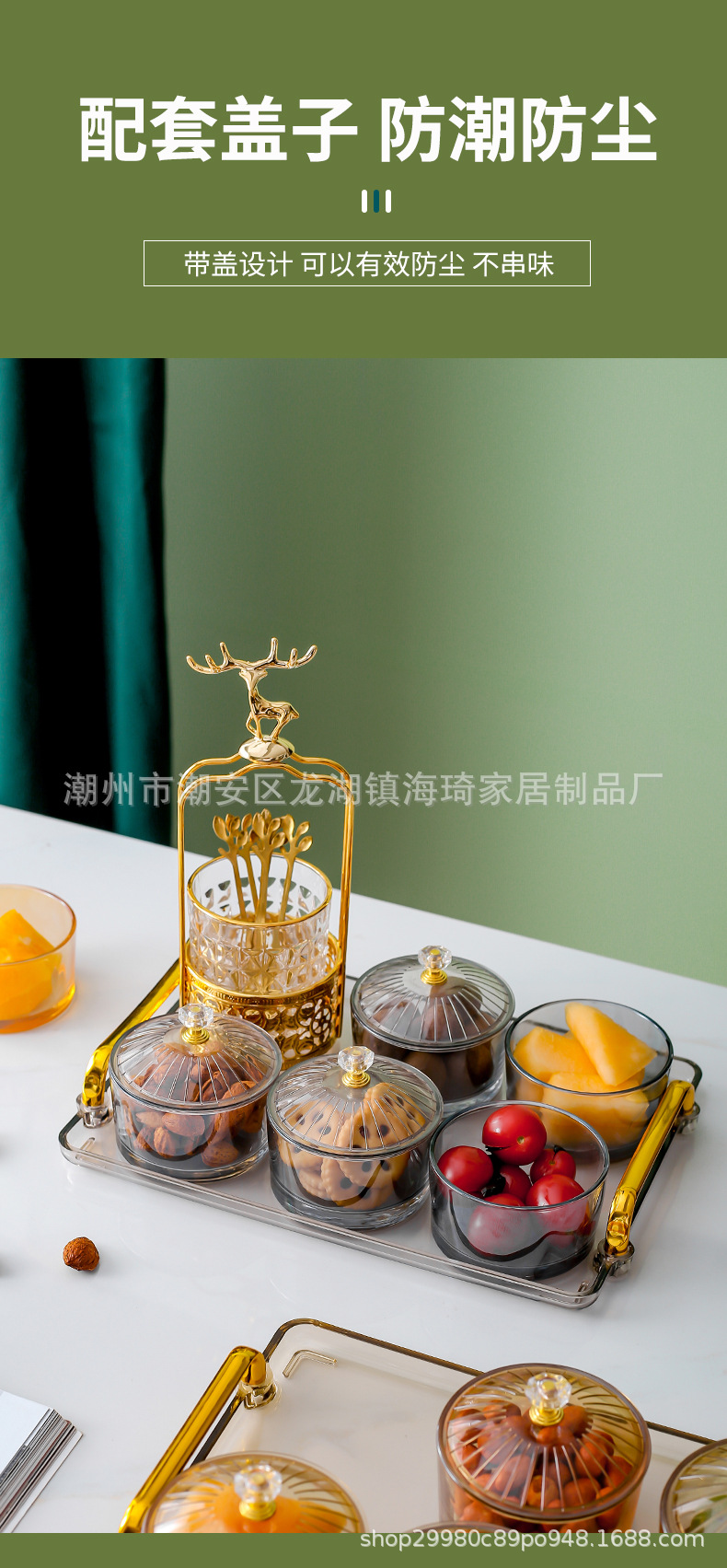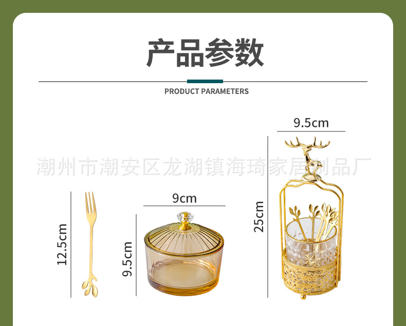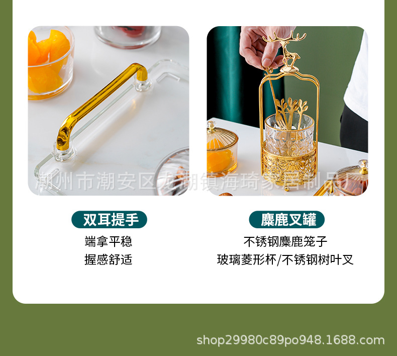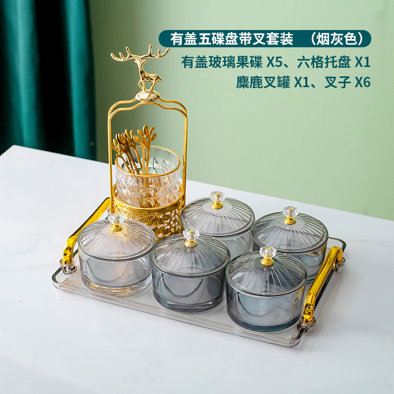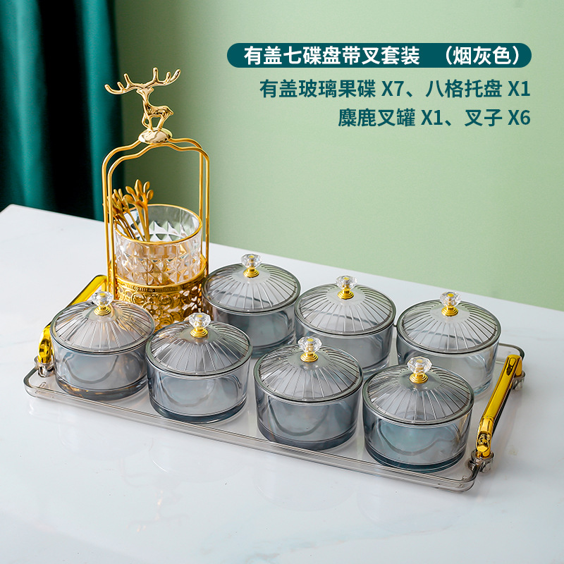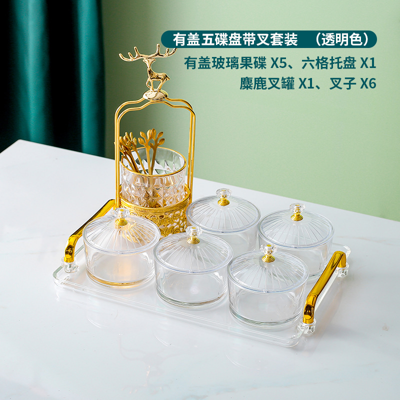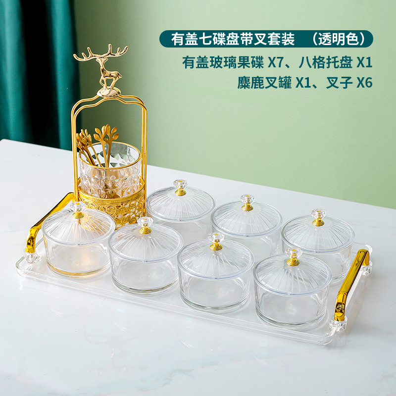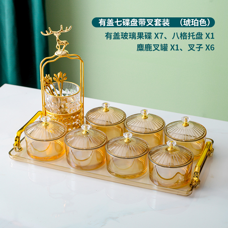 • 앰버 트레이 + 6 접시 유리 + 6 뚜껑 + 엘크 포크 항아리