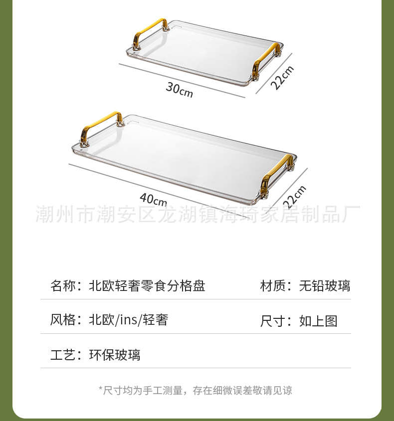 가벼운 고급 유리 액자 과일 접시 고가 너트 스낵 바 스낵 접시 절묘한 커피 테이블 스낵 배치 접시