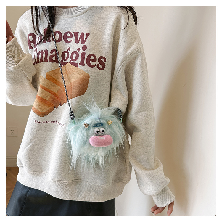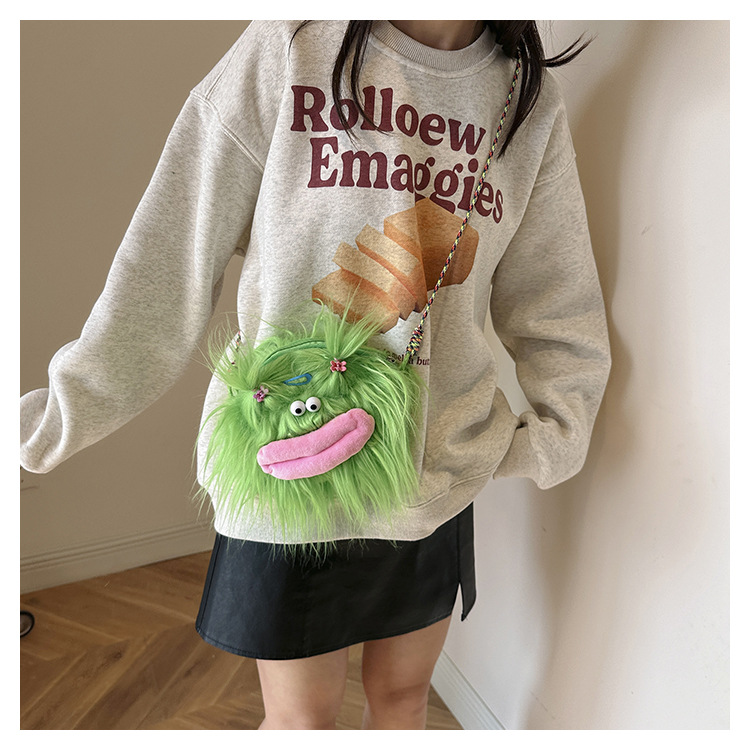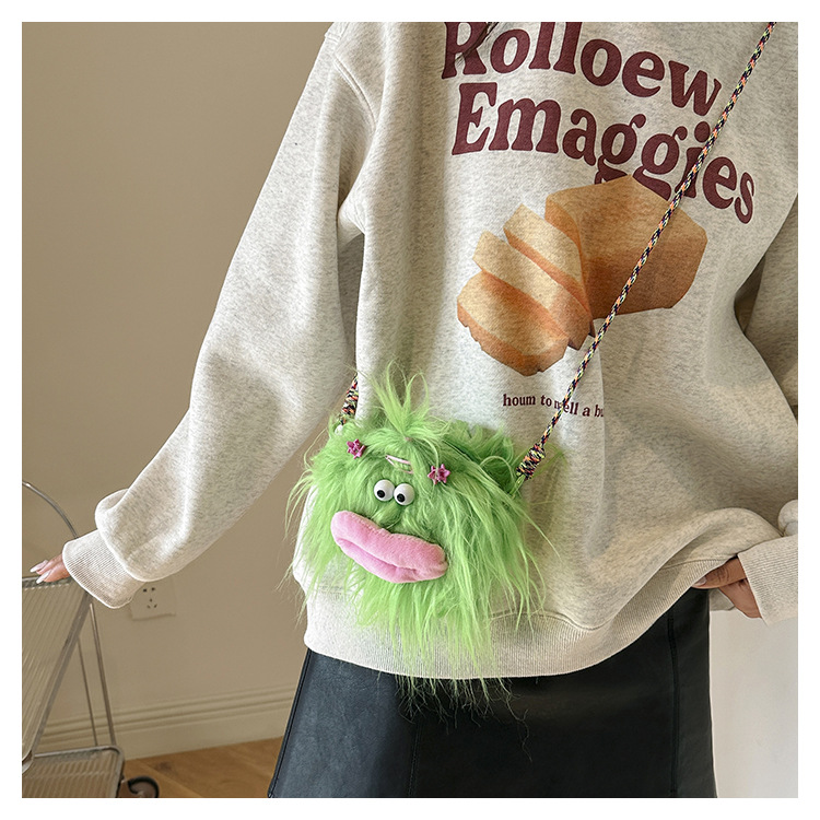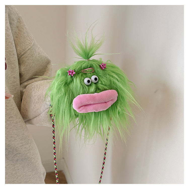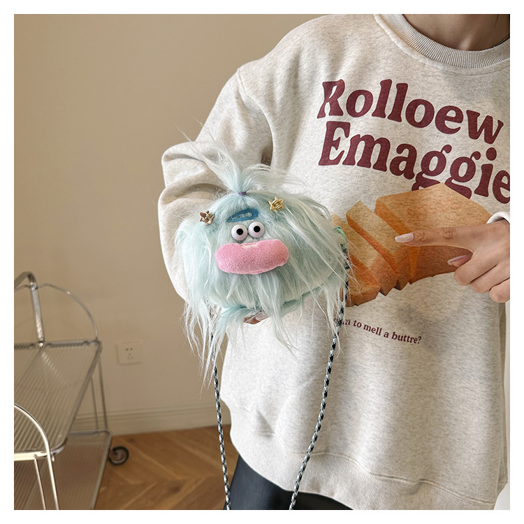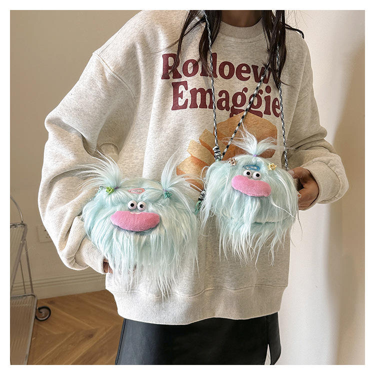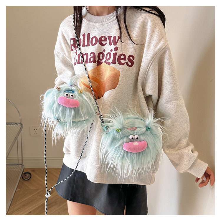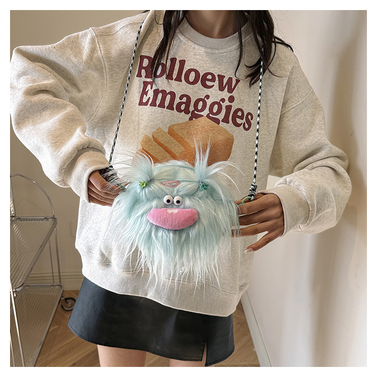 크로스 바디 백 못생긴 귀여운 긴 머리 작은 괴물 장식 인형 봉제 가방 가을과 겨울 귀여운 만화 큰 입 인형 어깨 가방스토어 가기