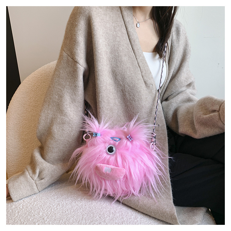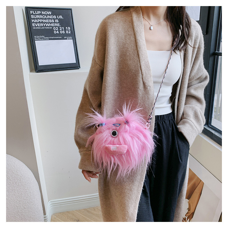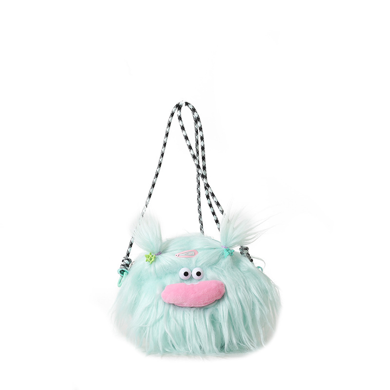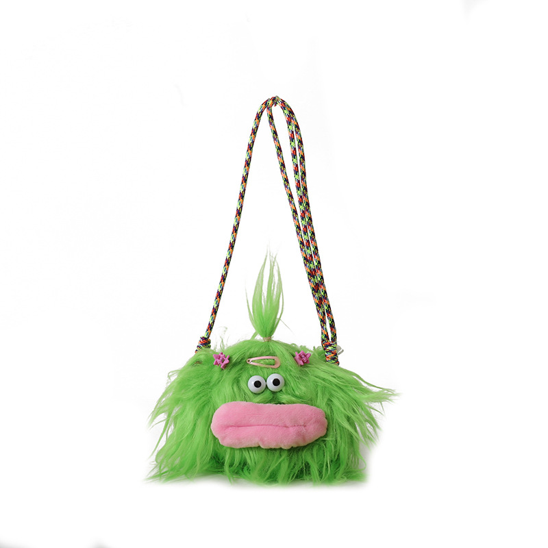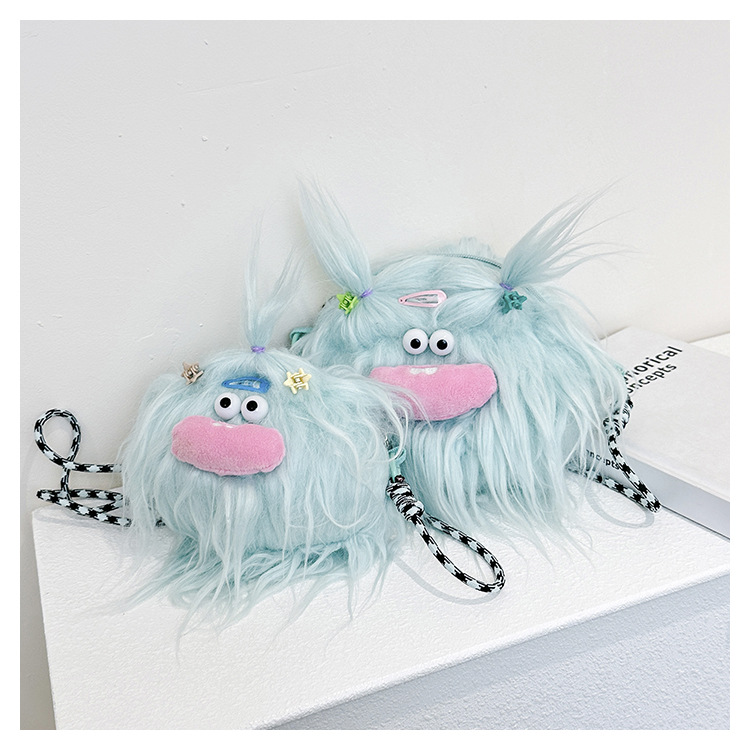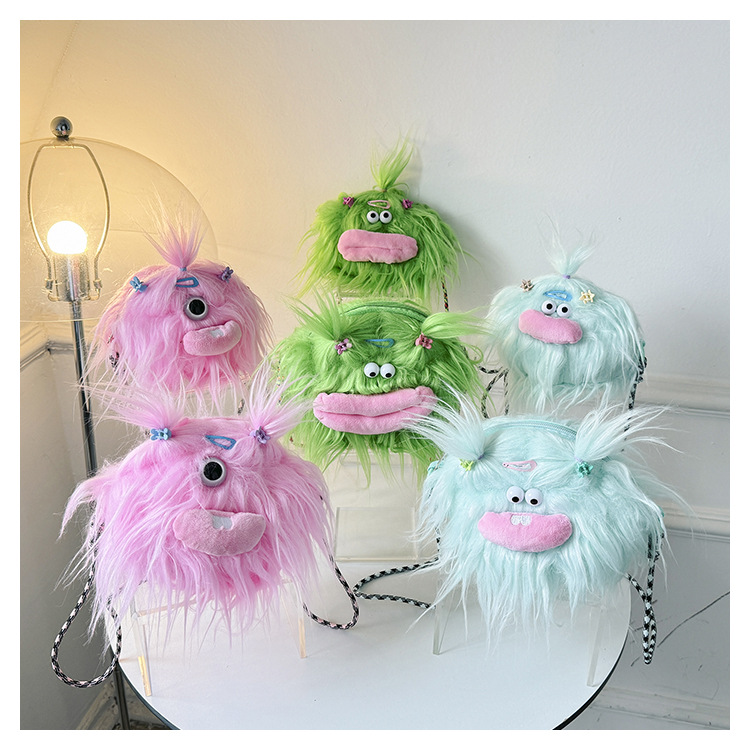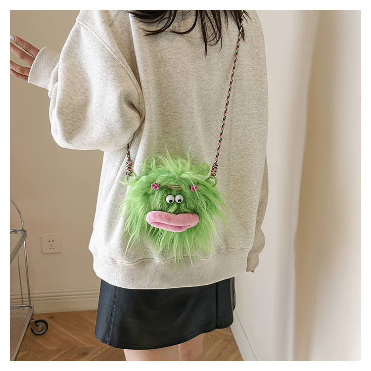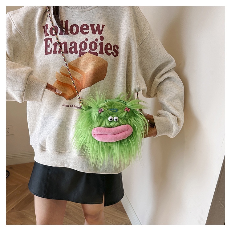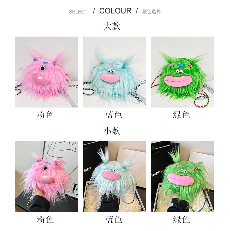 크로스 바디 백 못생긴 귀여운 긴 머리 작은 괴물 장식 인형 봉제 가방 가을과 겨울 귀여운 만화 큰 입 인형 어깨 가방스토어 가기