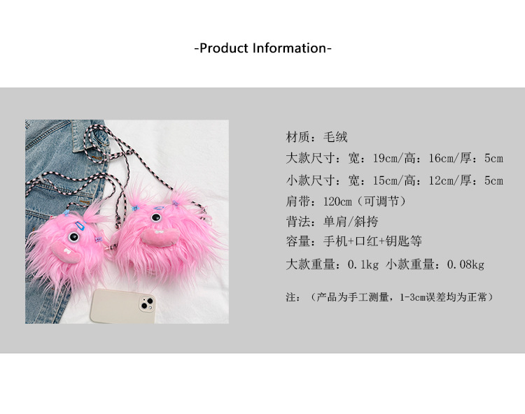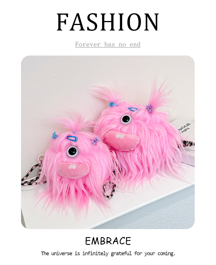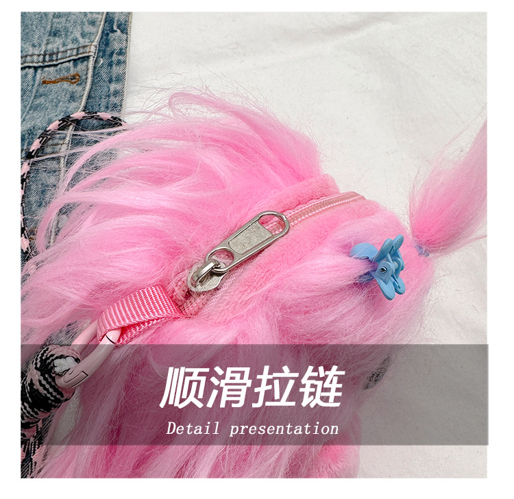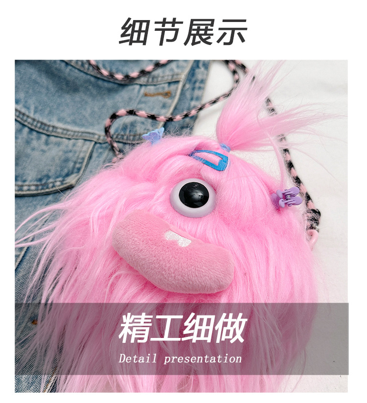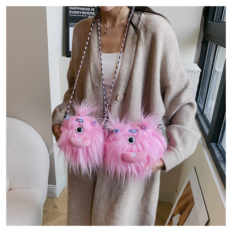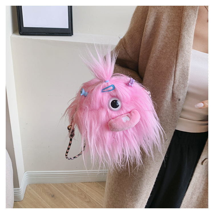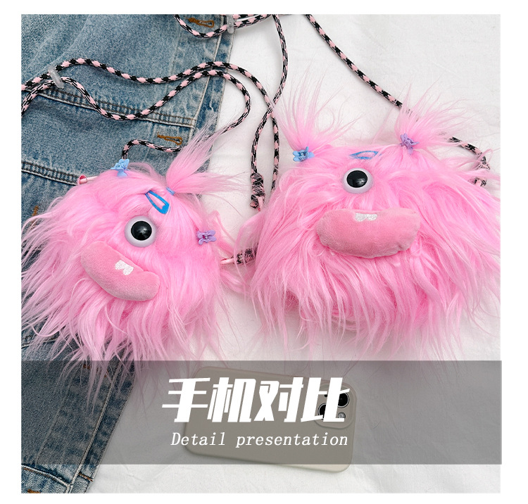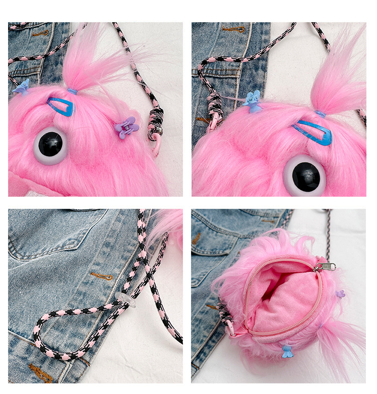 크로스 바디 백 못생긴 귀여운 긴 머리 작은 괴물 장식 인형 봉제 가방 가을과 겨울 귀여운 만화 큰 입 인형 어깨 가방스토어 가기