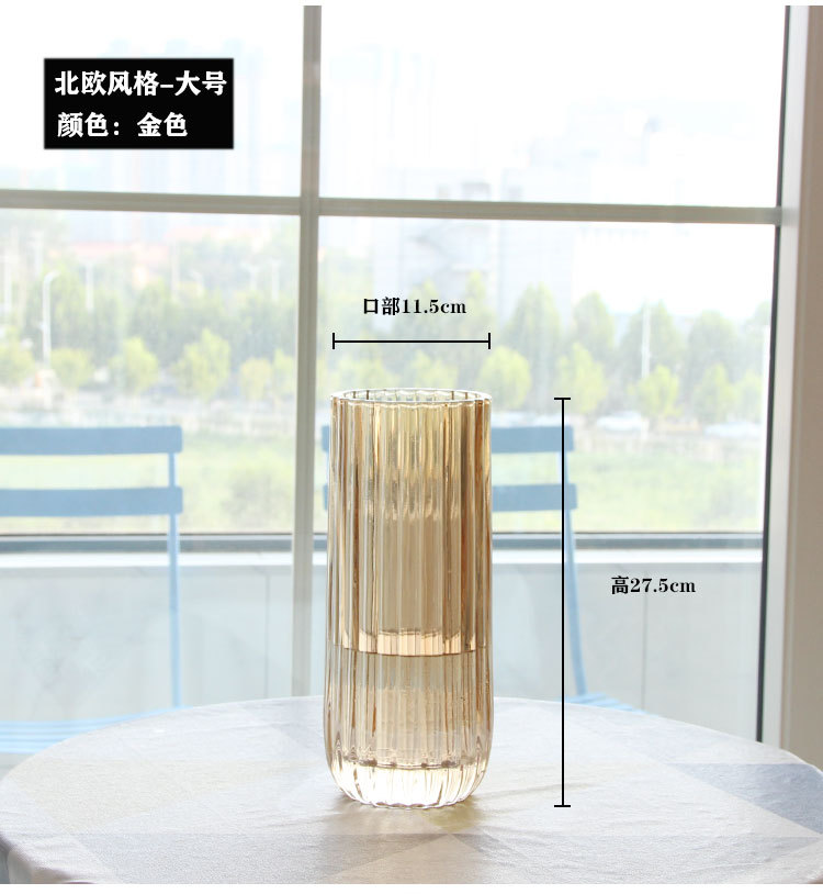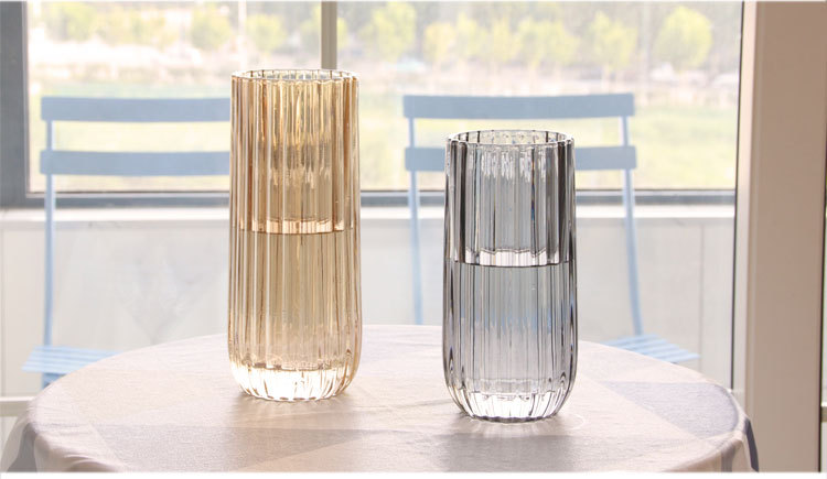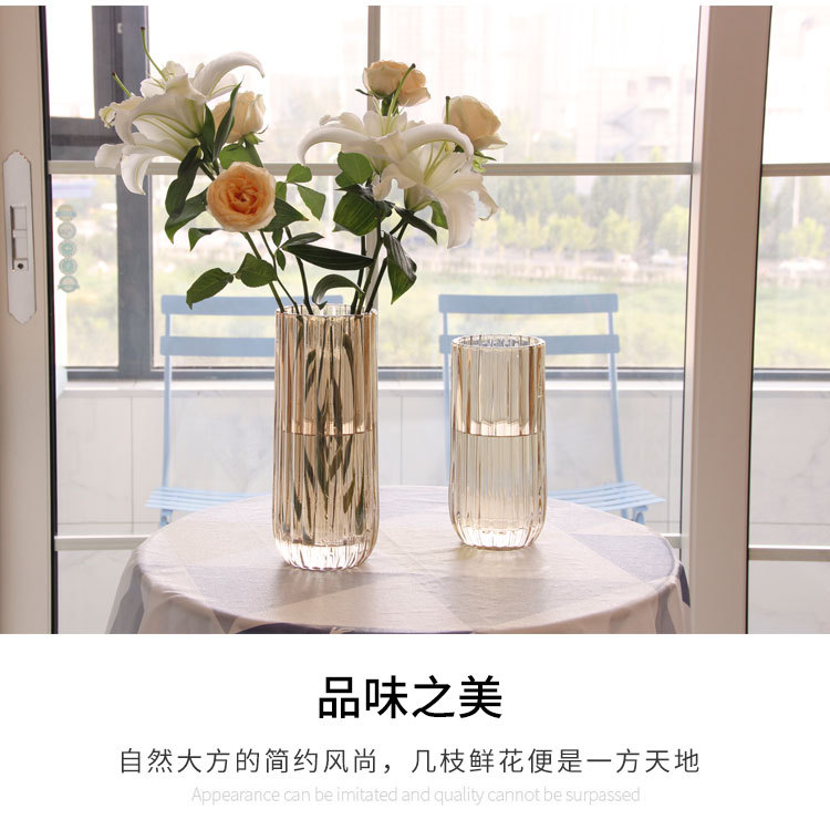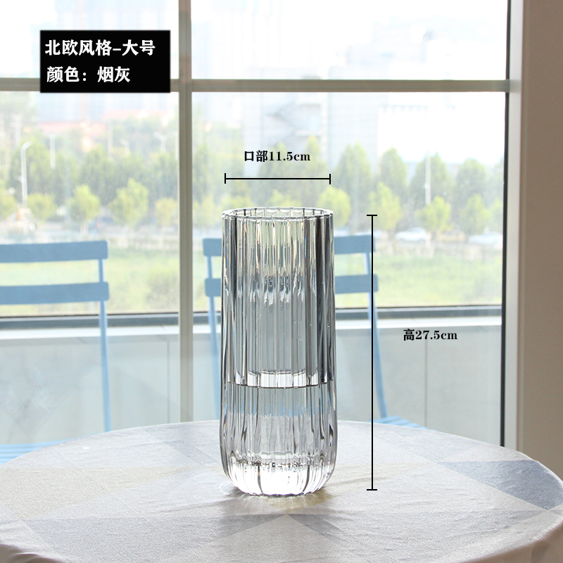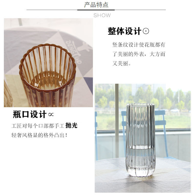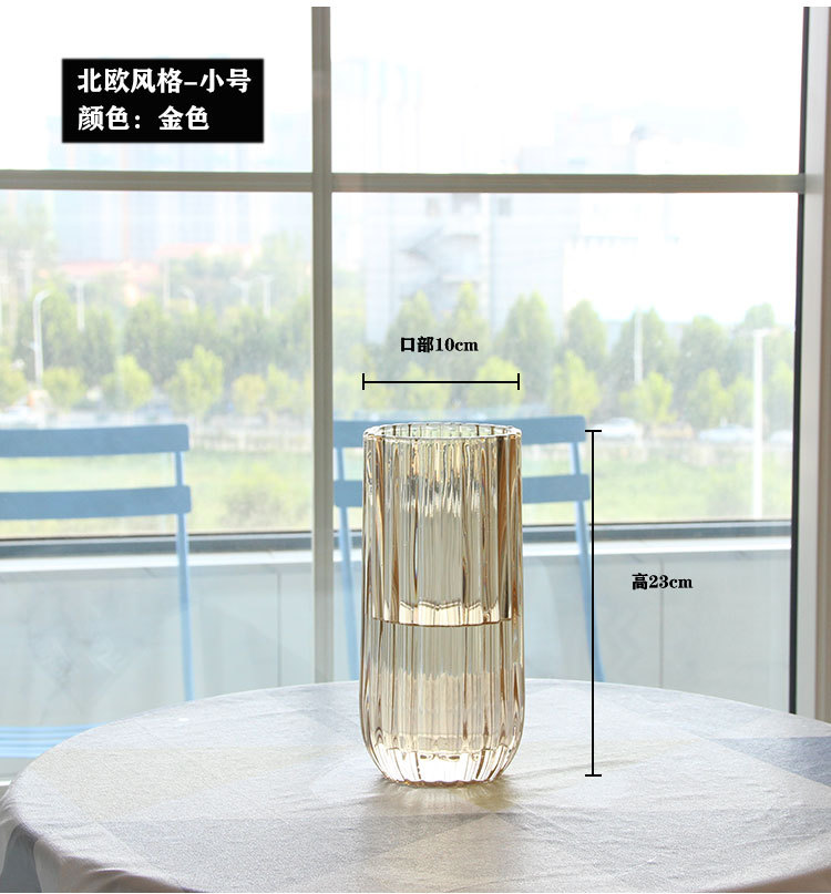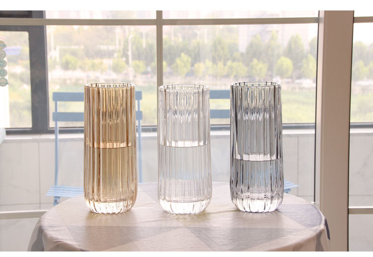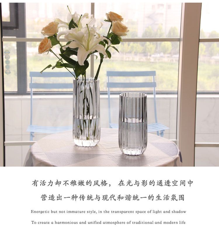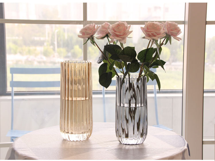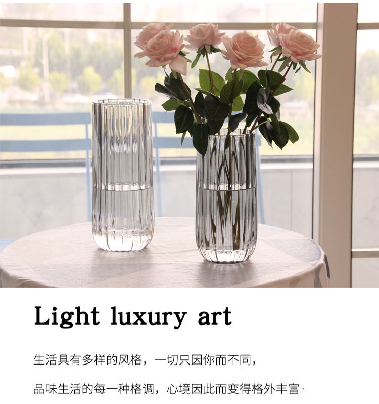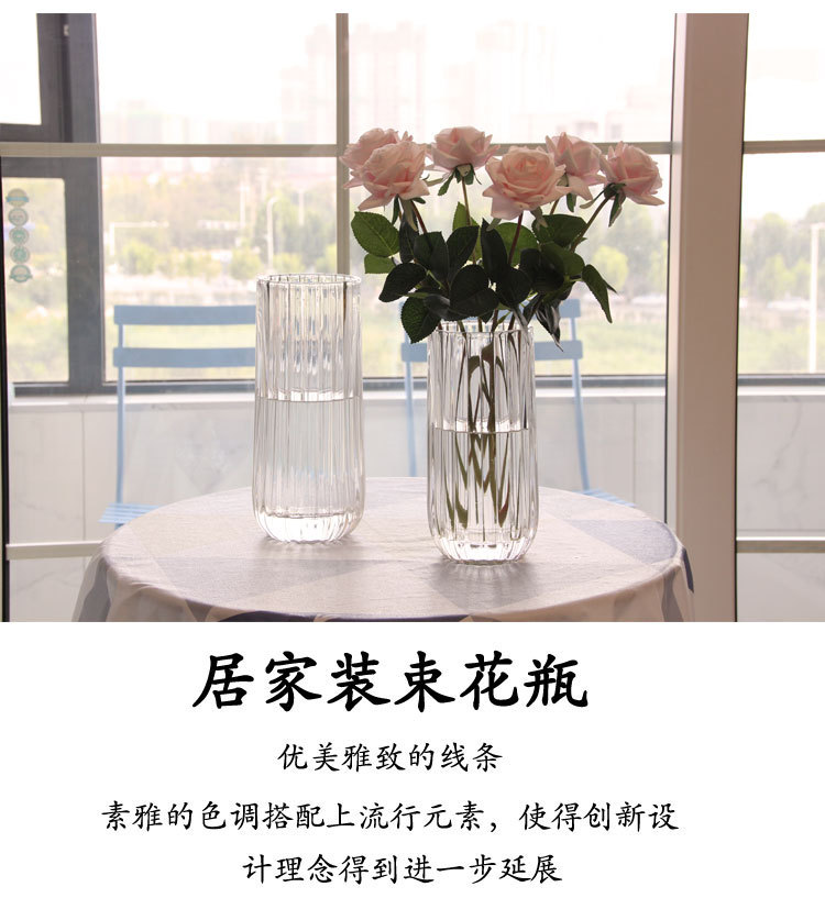 꽃병 거실 투명 유리 꽃 장식 꽃 장식 북유럽 수직 스트립 장식 가정용 유리 꽃 줄무늬 창조적 인 장미 진자스토어 가기