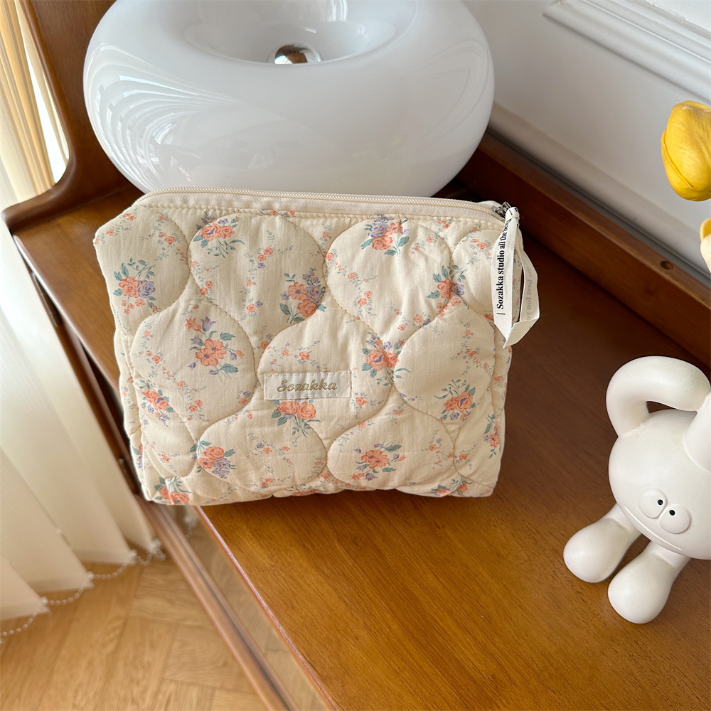 31081 빈티지 플라워 화장품 가방 퀼트 코튼 워시 백 대용량 클러치 백 여행 잡화 보관 가방스토어 가기