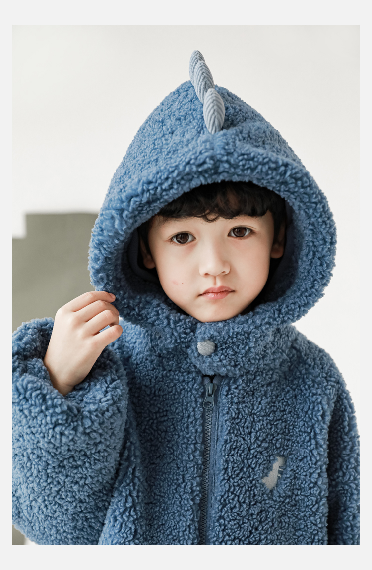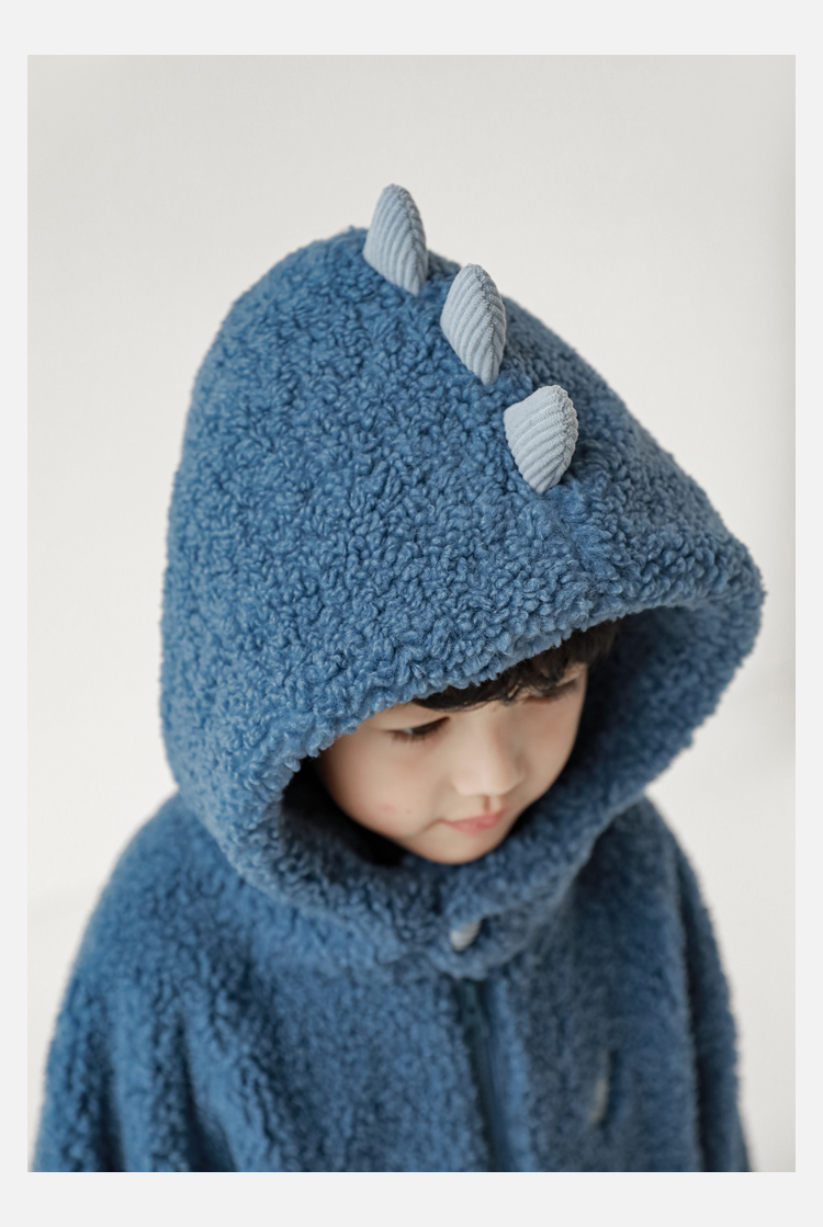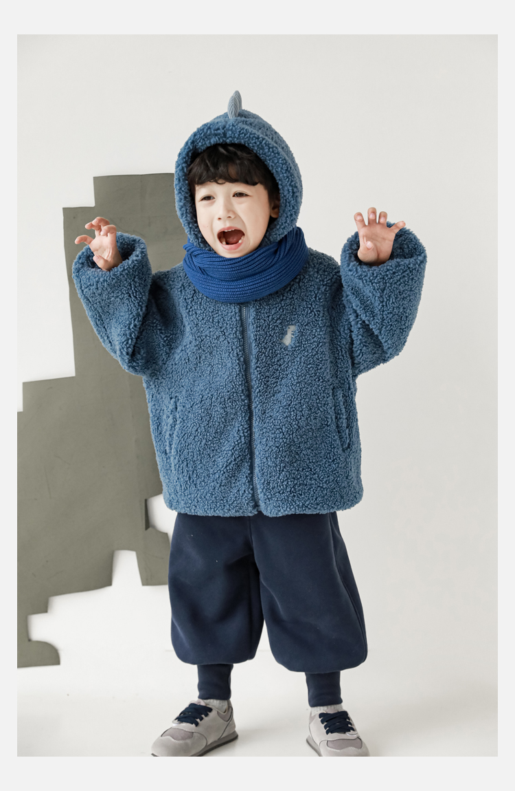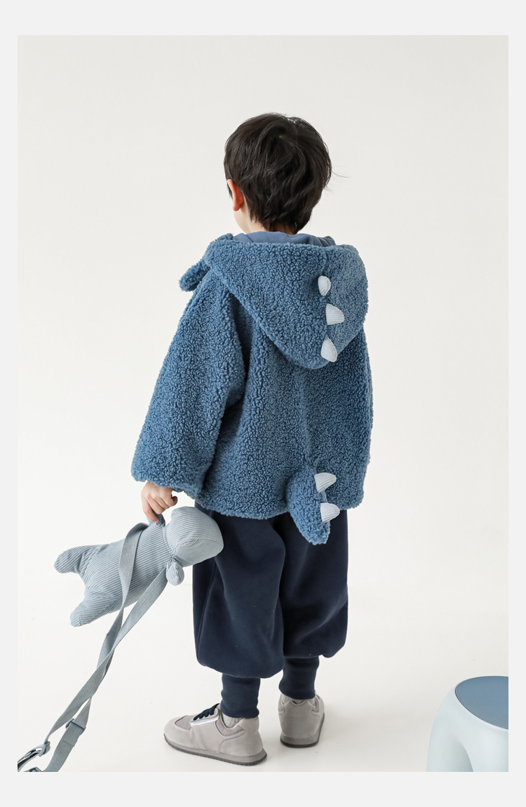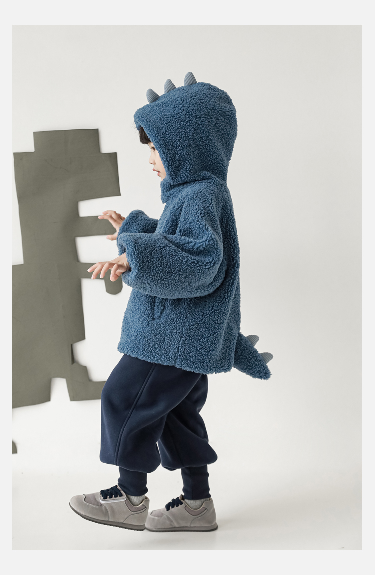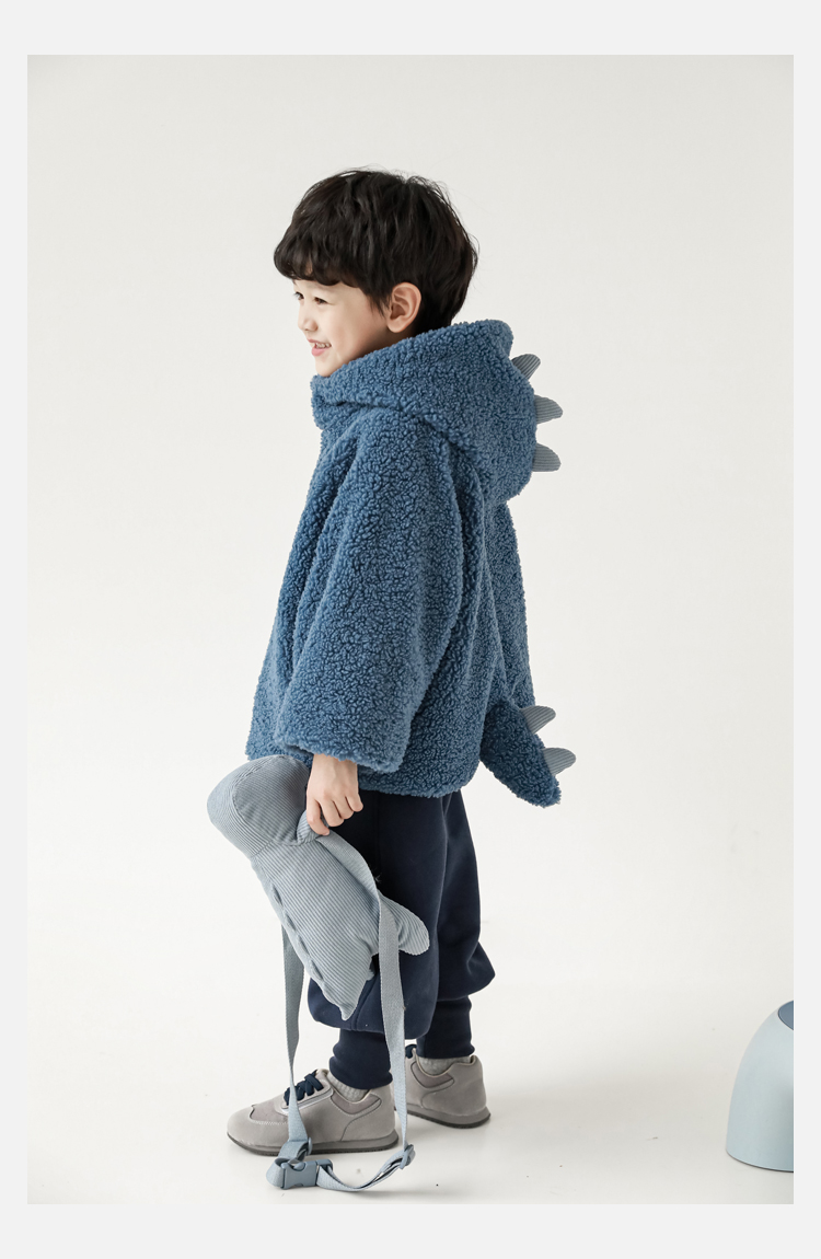 Wurib 겨울 어린이 귀여운 등 지느러미 스웨터 플러스 벨벳 코트 소년의 만화 따뜻한 후드 탑 두꺼운스토어 가기
