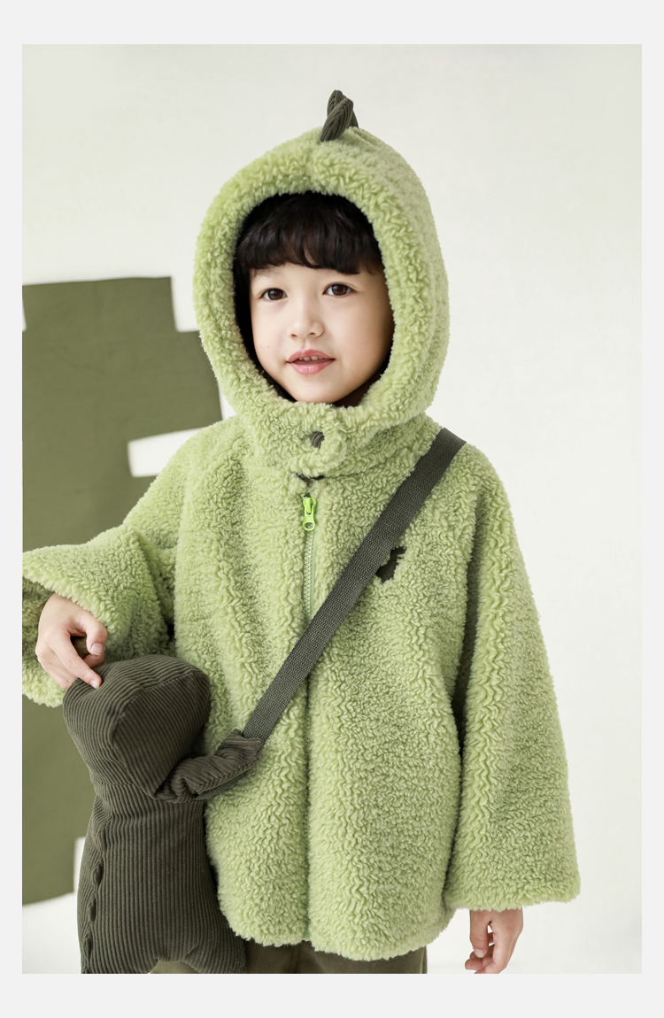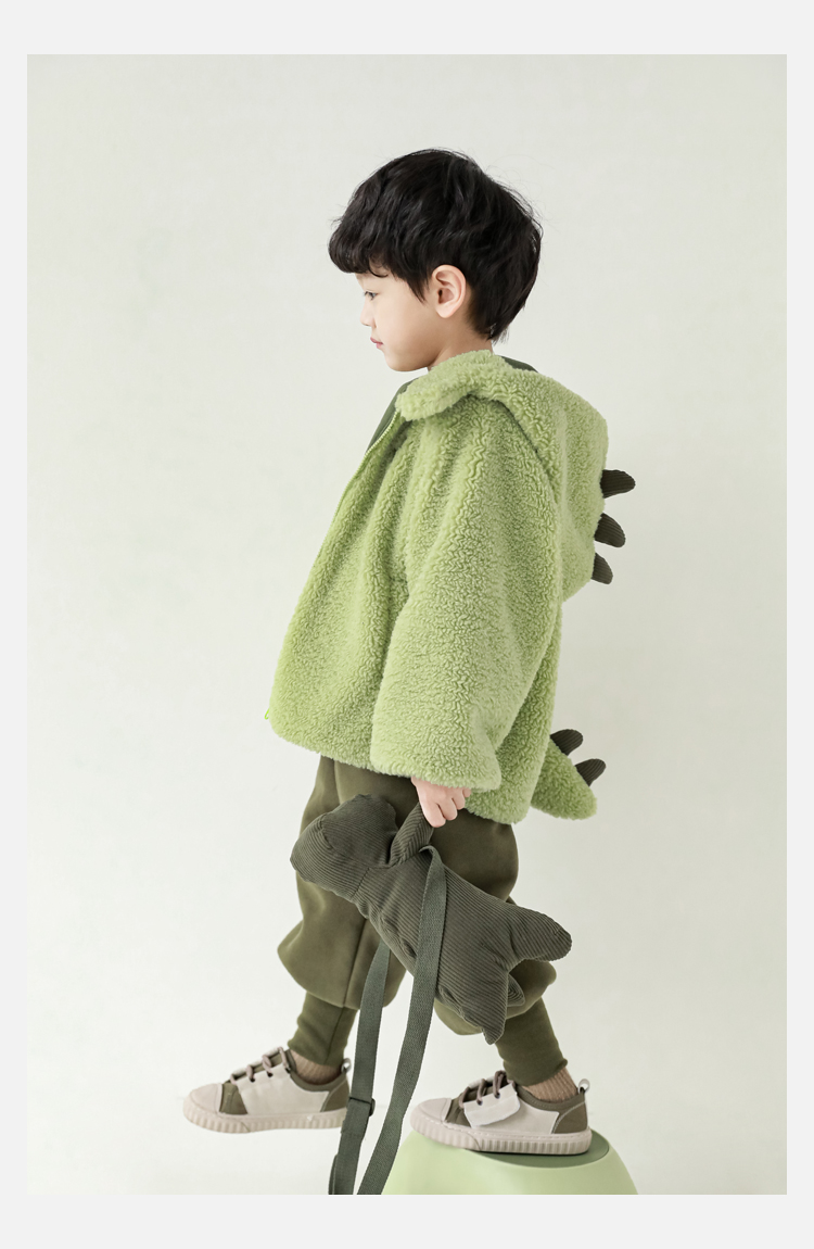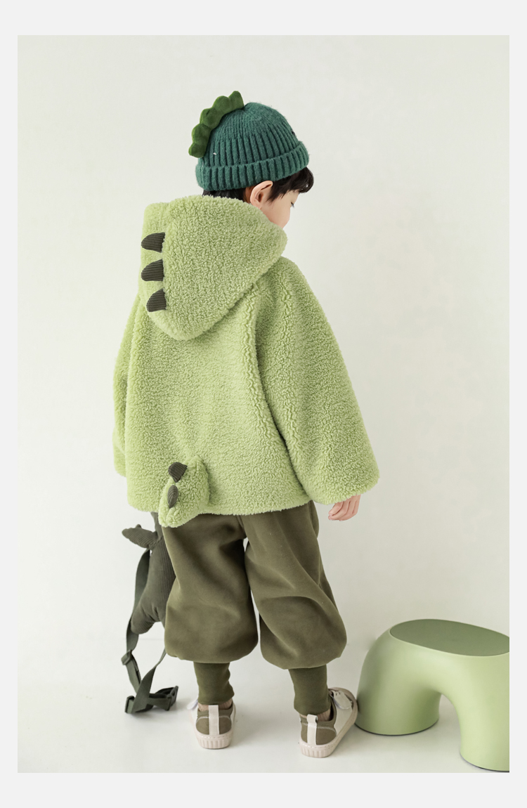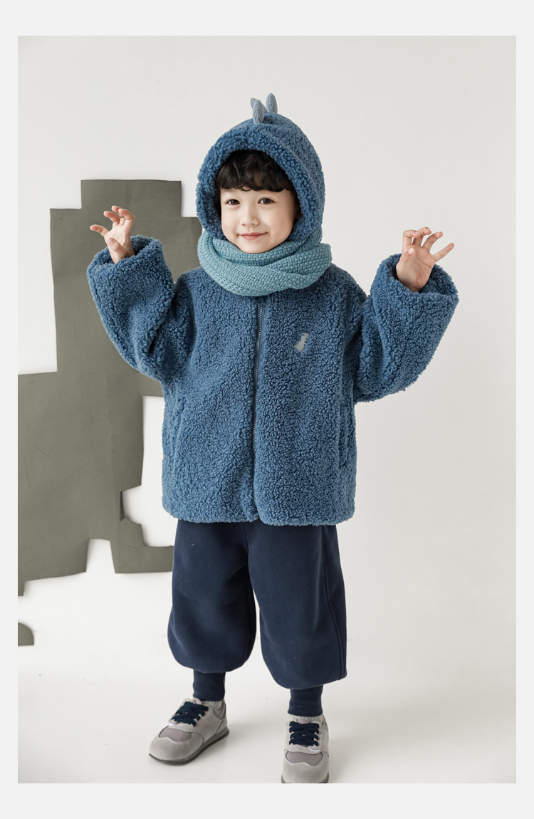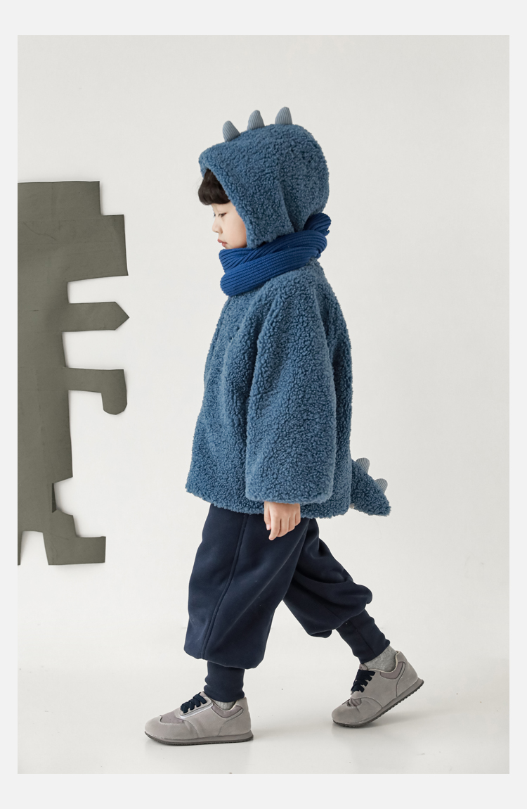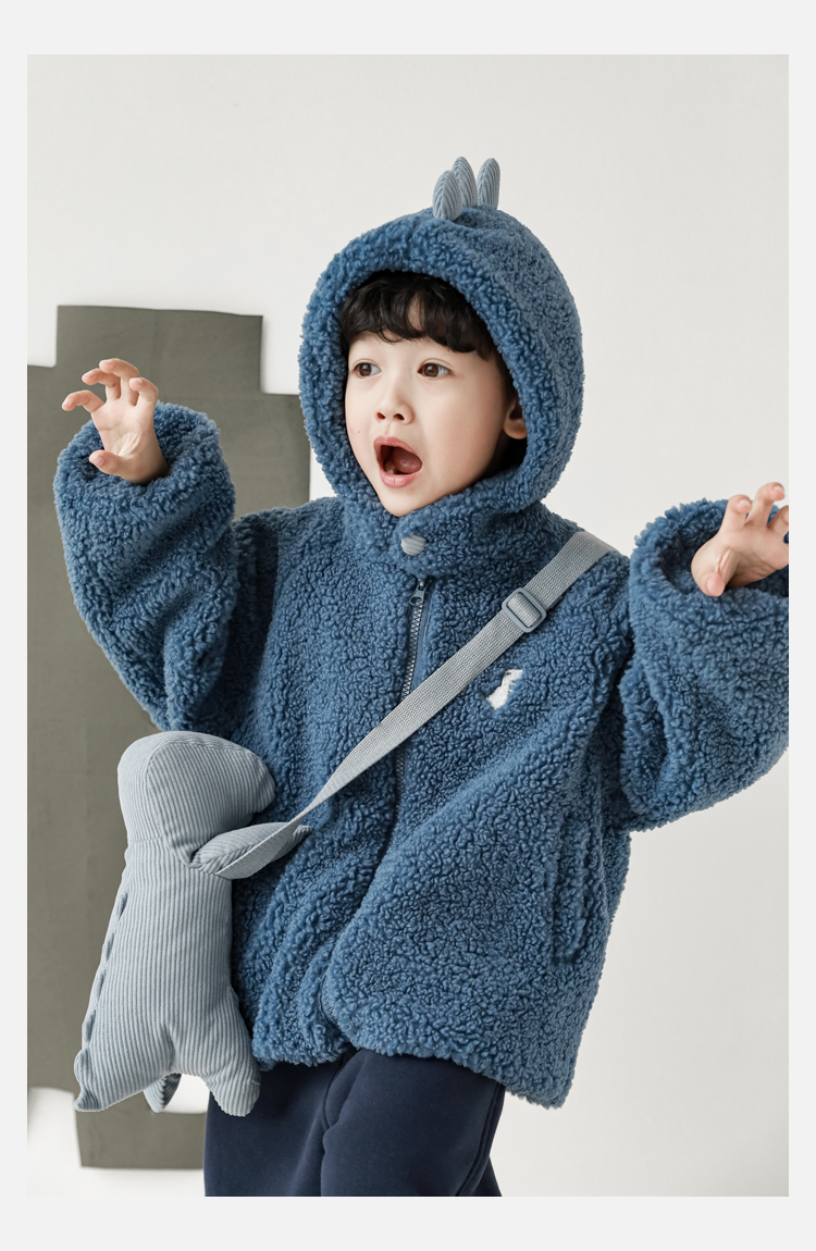 Wurib 겨울 어린이 귀여운 등 지느러미 스웨터 플러스 벨벳 코트 소년의 만화 따뜻한 후드 탑 두꺼운스토어 가기
