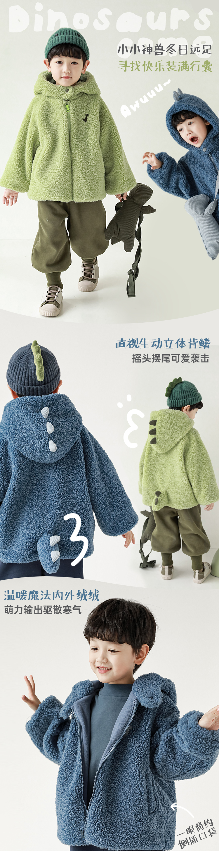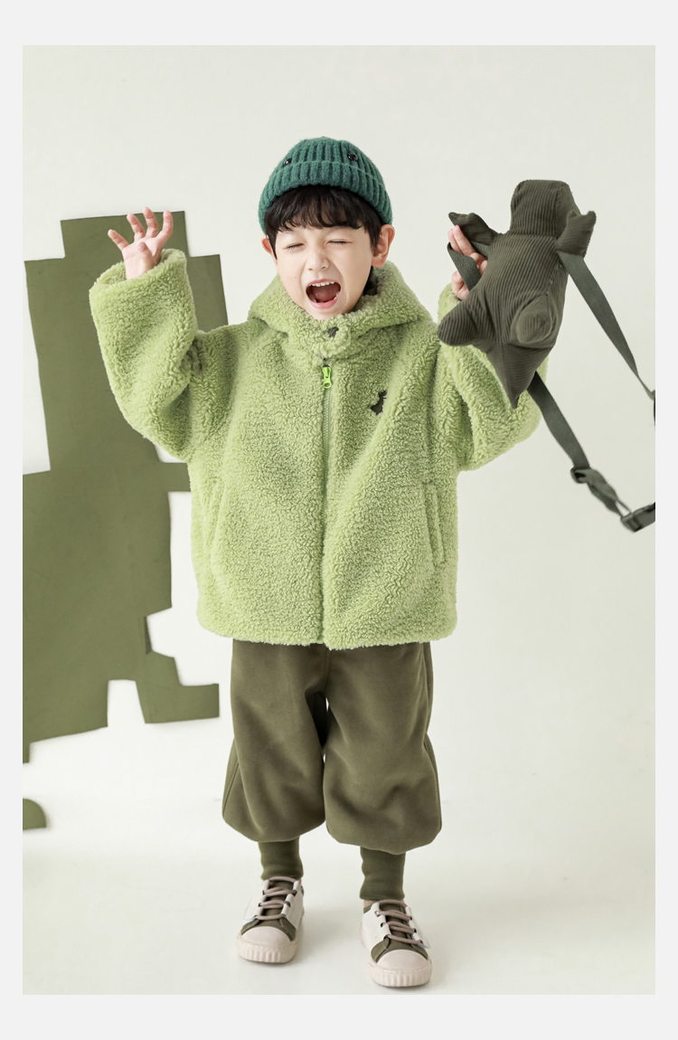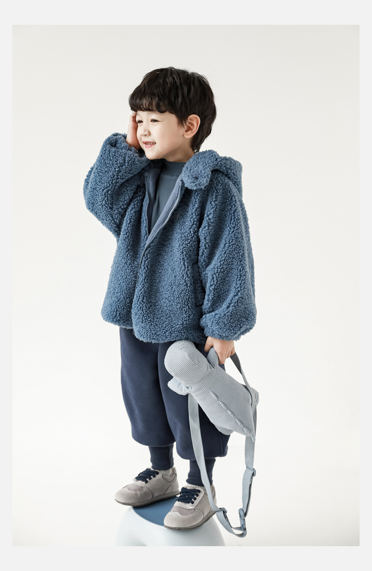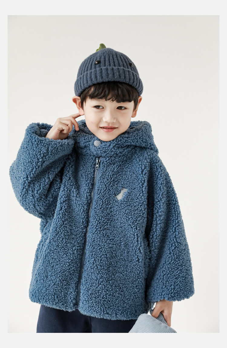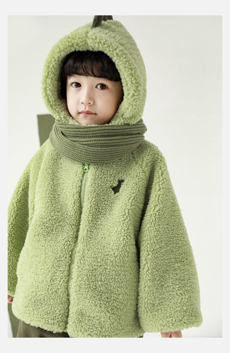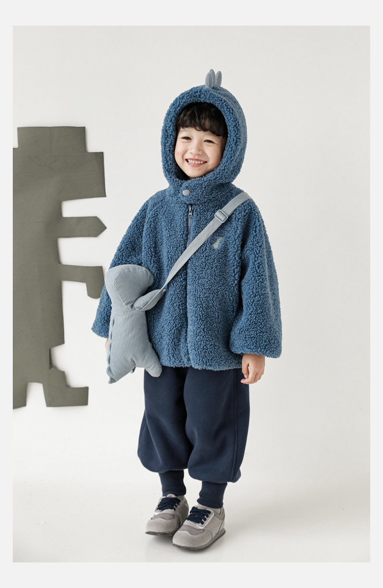 Wurib 겨울 어린이 귀여운 등 지느러미 스웨터 플러스 벨벳 코트 소년의 만화 따뜻한 후드 탑 두꺼운스토어 가기