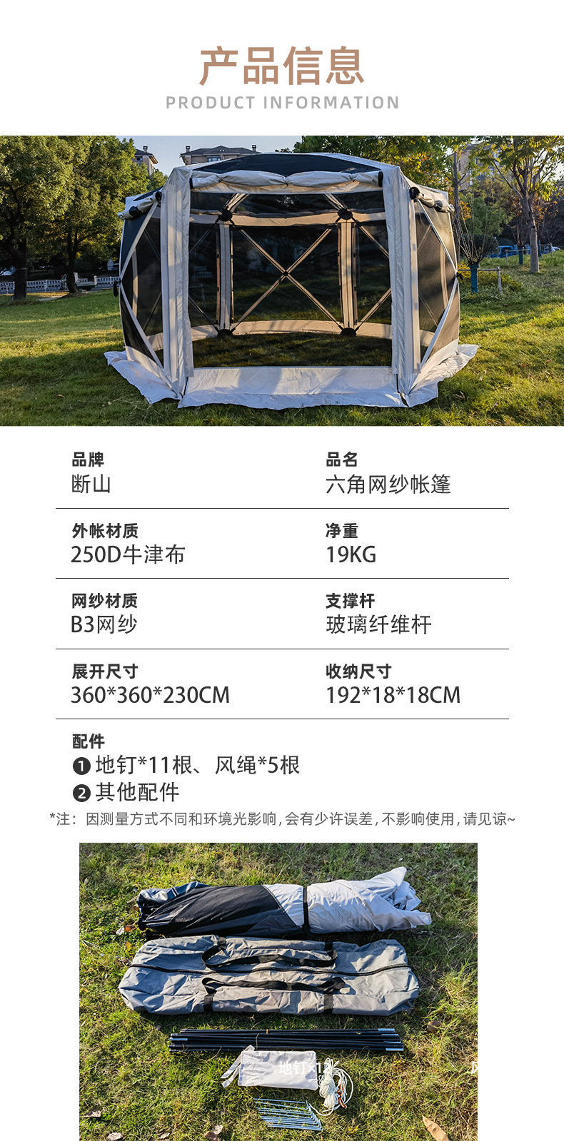 육각 싱글 도어 오픈 탑 야외 텐트 대형 가족 캠핑 텐트 모기 방지 메쉬 통풍 야외 빅 텐트