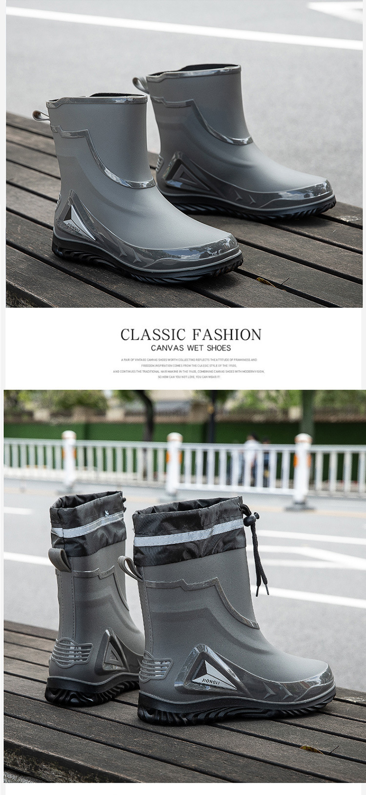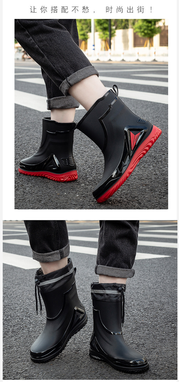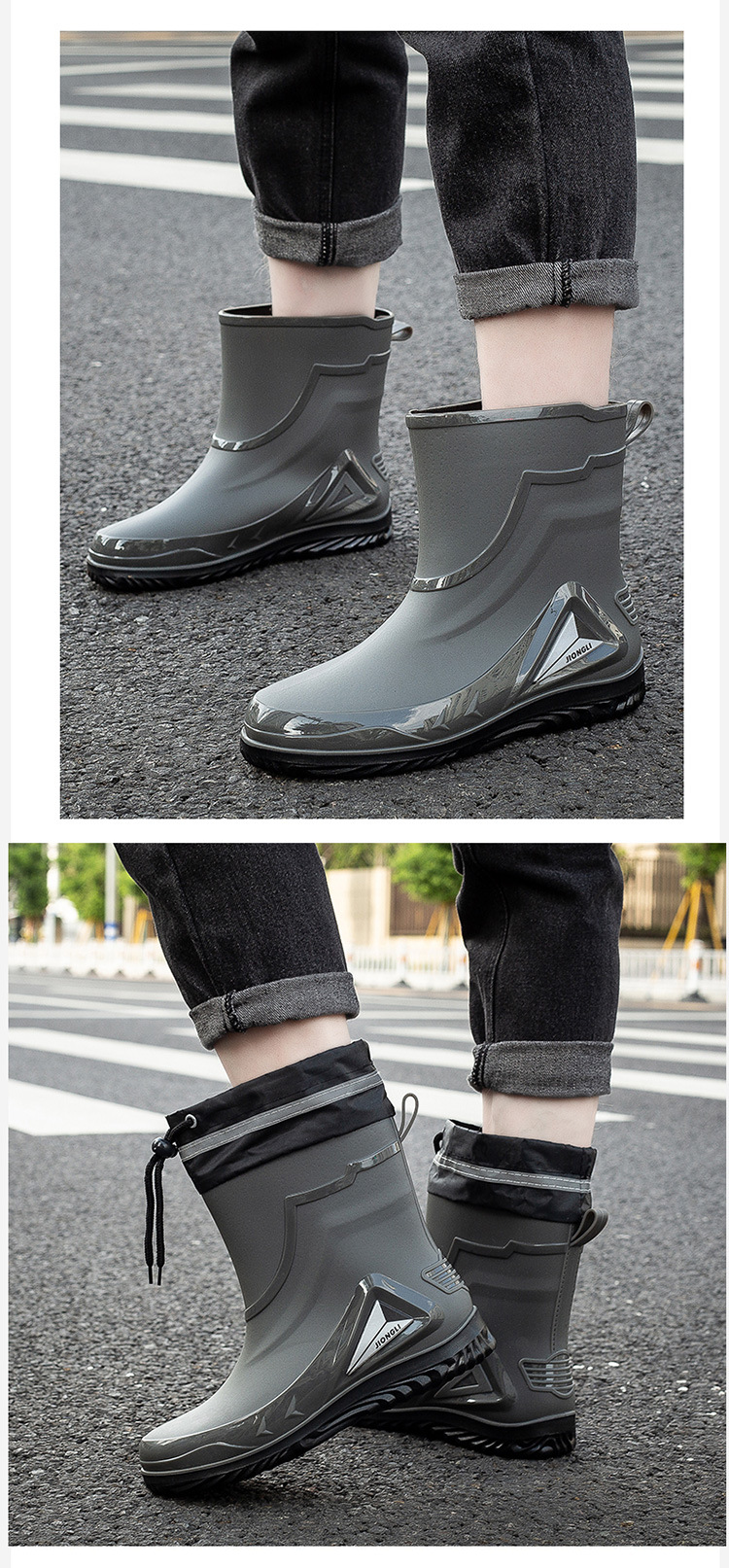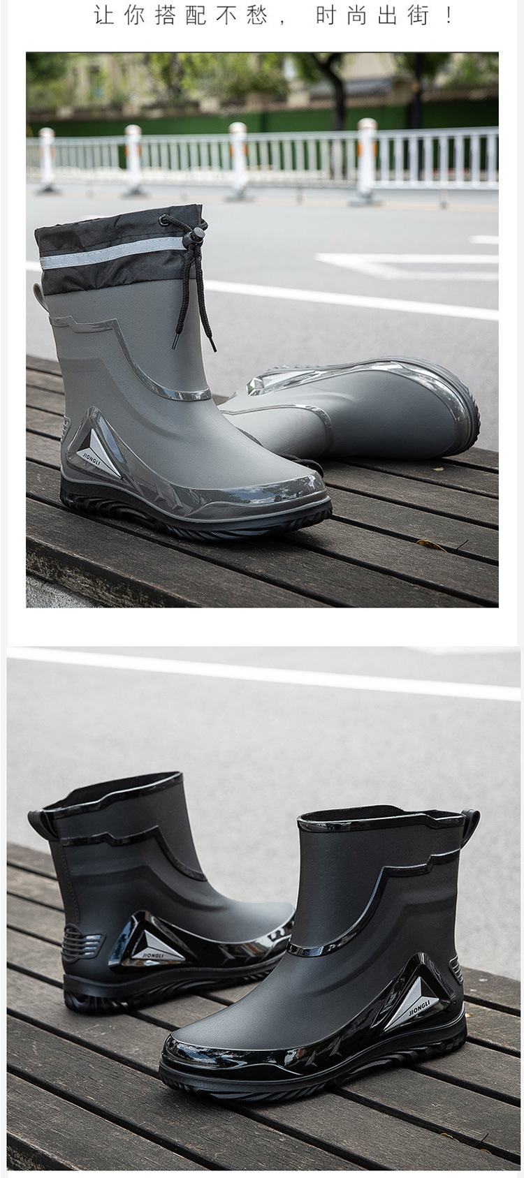 패션 장화 남성 노동 보호 사이트 레인 부츠 미끄럼 방지 내마모성 고무 레인 부츠 두꺼운 낚시 물 신발 도매