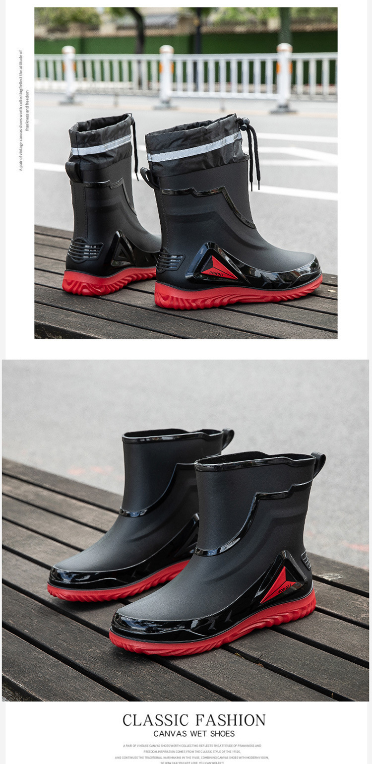 패션 장화 남성 노동 보호 사이트 레인 부츠 미끄럼 방지 내마모성 고무 레인 부츠 두꺼운 낚시 물 신발 도매스토어 가기