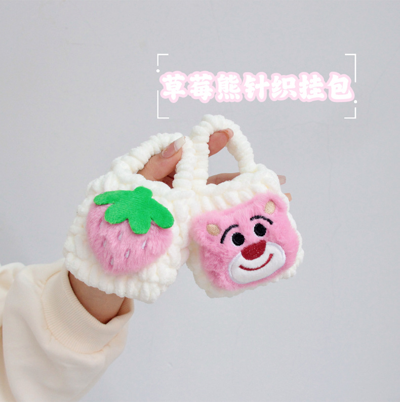 귀여운 만화 딸기 곰 봉제 동전 지갑 어린이 동전 가방 열쇠 가방 휴대용 미니 이어폰 가방 도매