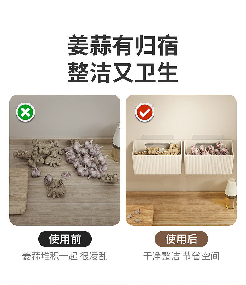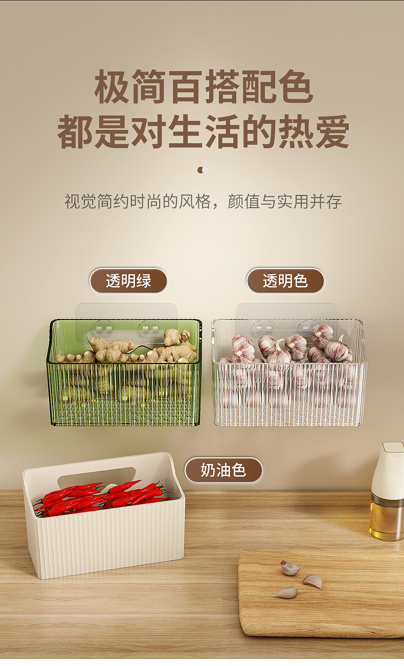 펀치 없는 보관 아티팩트 주방 수납 랙 갈비, 생강과 마늘 벽걸이 선반 벽걸이 형 배수 랙 과일 및 야채 스낵