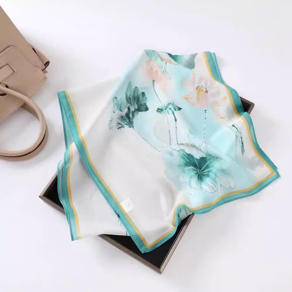 패션 새로운 롱 스카프 여성의 한국식 라인 인쇄 실크 미디엄 롱 얇은 스카프 자외선 차단제 숄스토어 가기