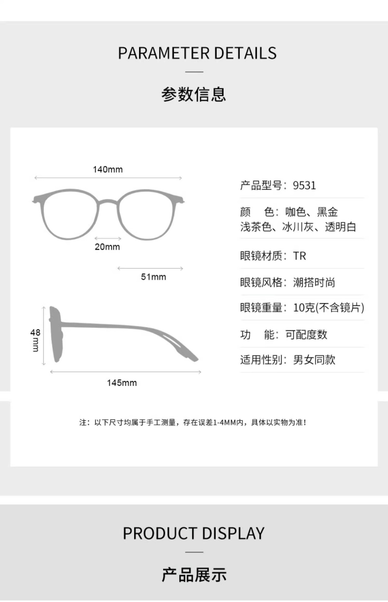 초경량 차 안경 근시 인터넷 인기 tr 안경 프레임 9531 단양 안경 일반 대형 프레임 안경 여성용스토어 가기
