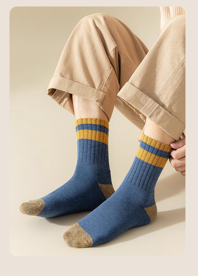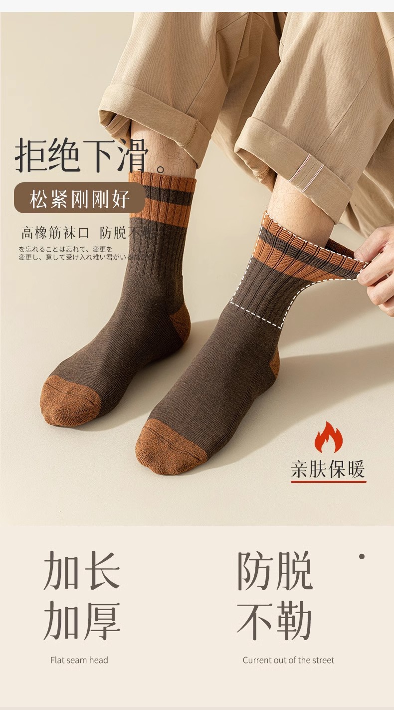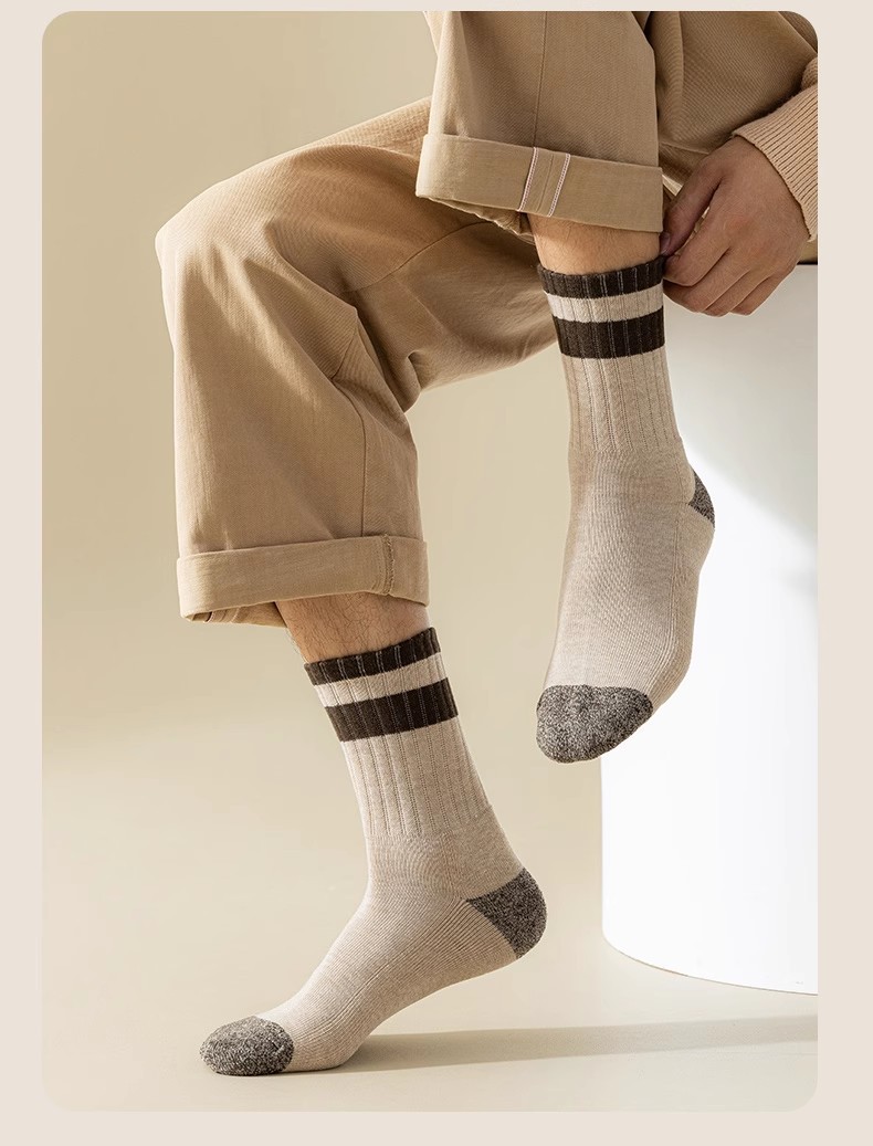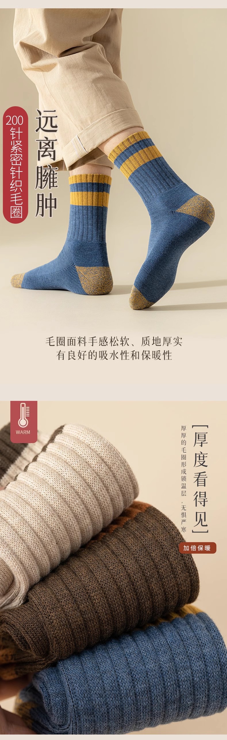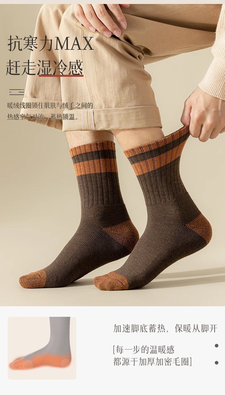 양말 남자의 중간 튜브 스타킹 가을과 겨울 스포츠 타올 기모 두꺼운 따뜻한 단색 면 양말 유행 봄과 가을 도매
